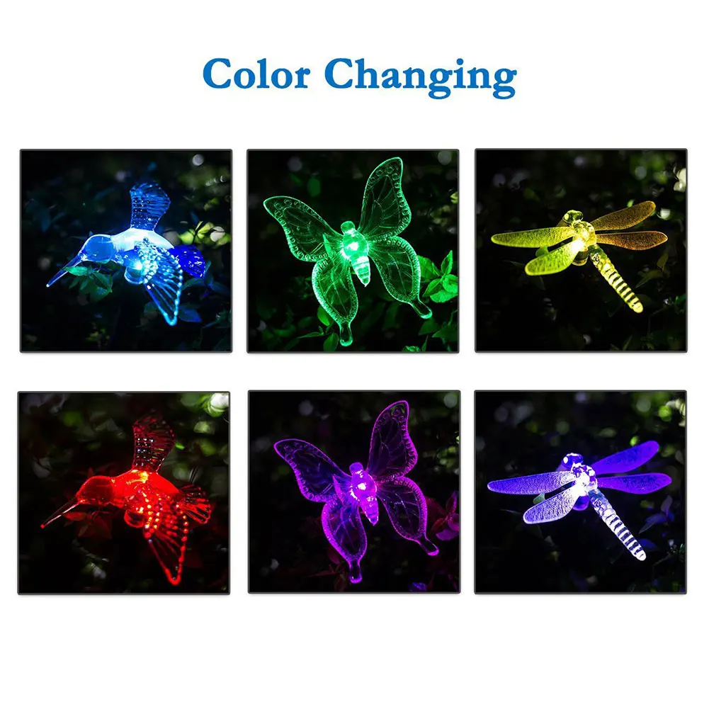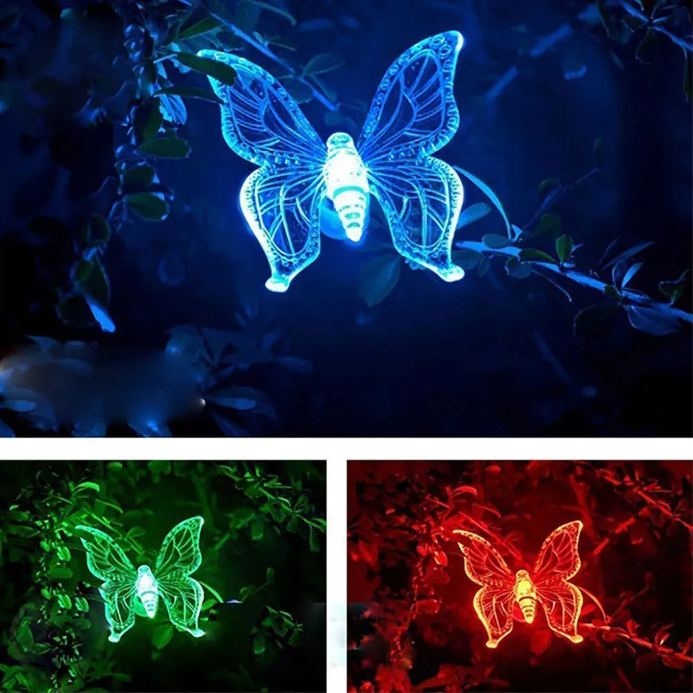 Светодиодная Водонепроницаемая садовая декоративная лампа в виде бабочки, стрекозы, экологически чистая Светодиодная лампа на солнечной батарее, водонепроницаемое уличное освещение