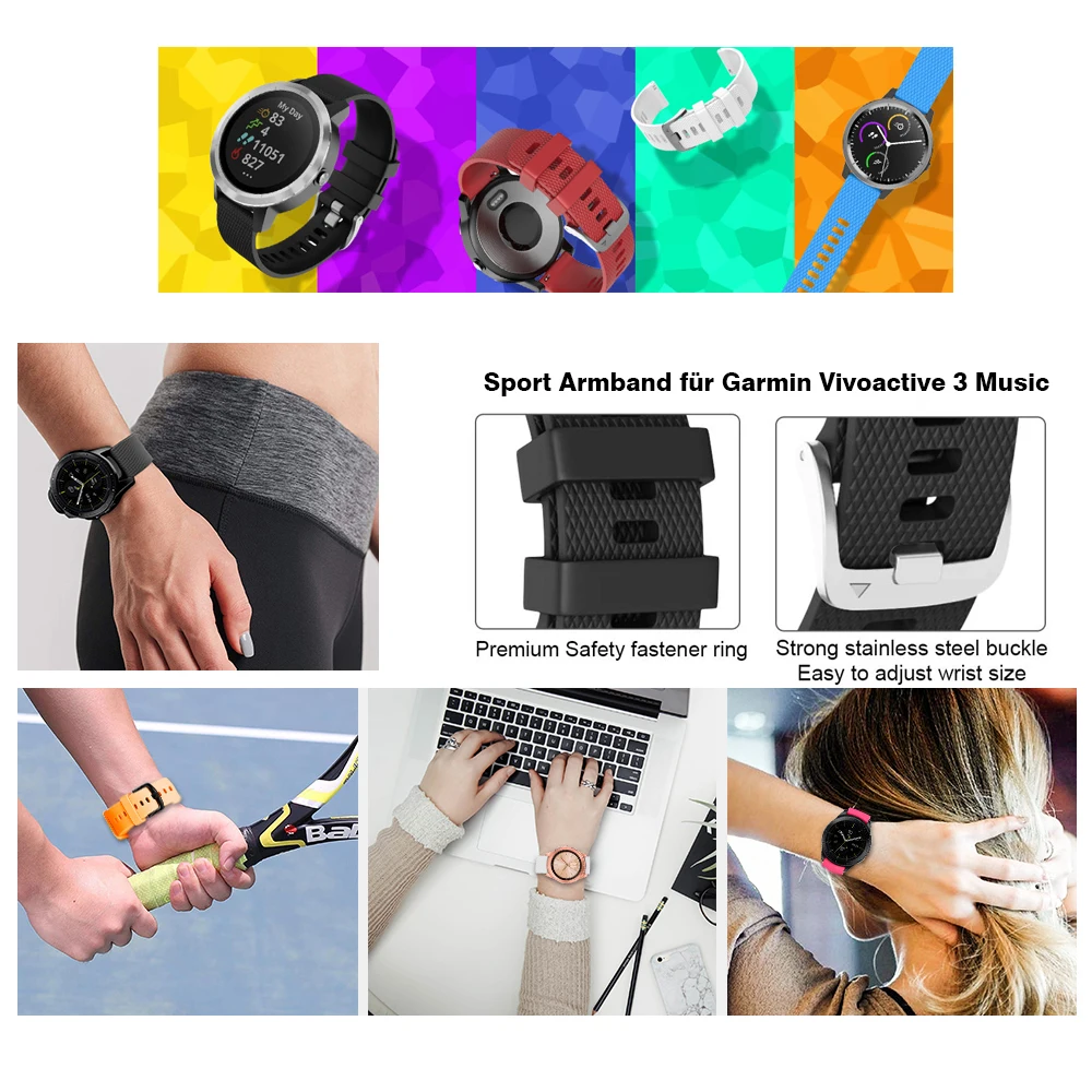Ремешок для часов YAYUU, для фитнес-часов Garmin Vivoactive 3Vivomove, 20 мм, мягкий силиконовый сменный ремешок