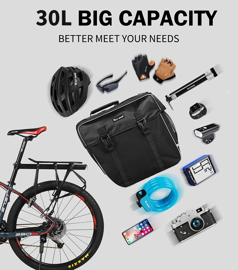 WEST BIKING 28L велосипедная сумка для багажника Водонепроницаемая MTB Дорожная велосипедная Сумка велосипедная двойная боковая задняя стойка багажная переноска для заднего сиденья