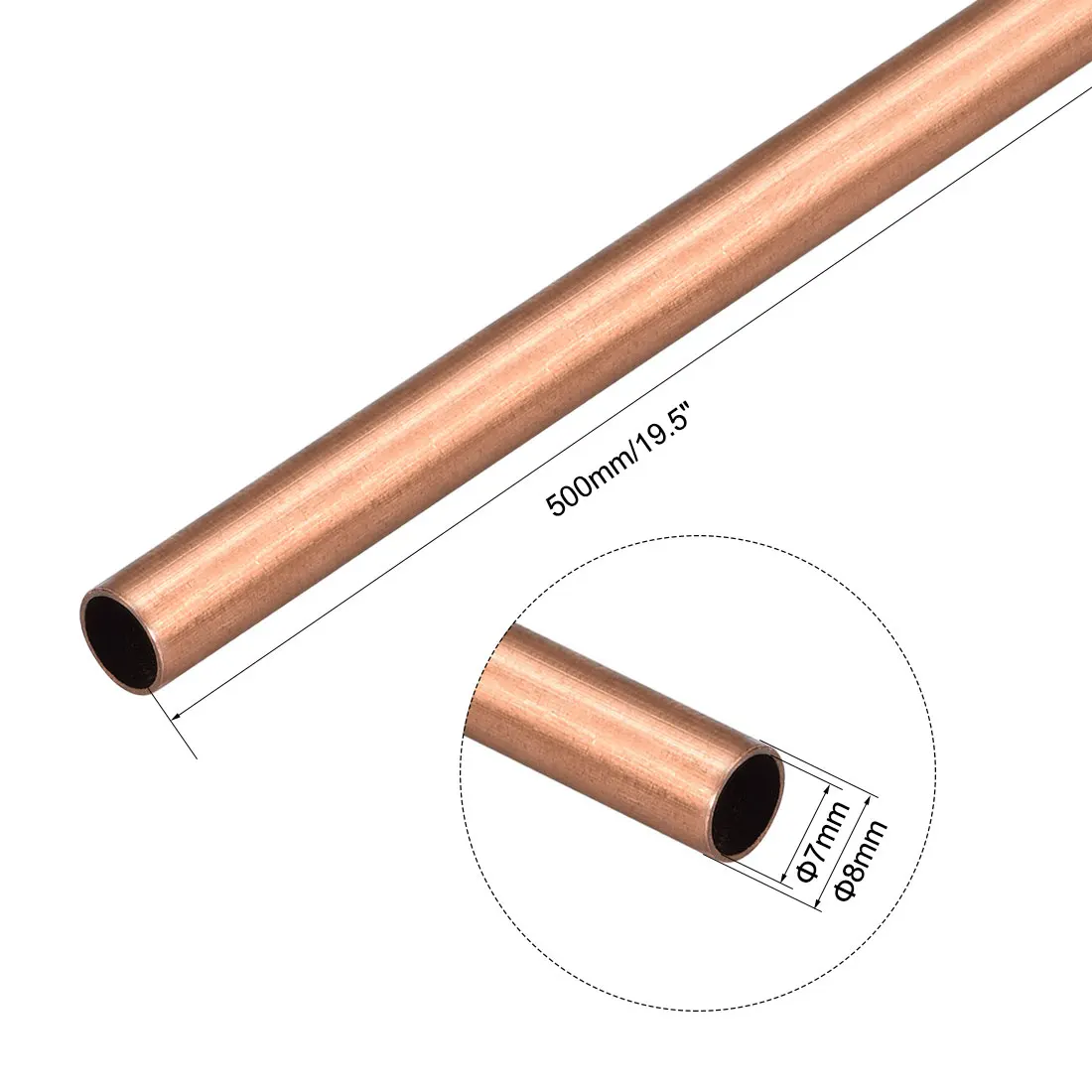 Медная бесшовная круглая ручка uxcell Uxcell, 1 шт., внешний диаметр 8 мм, внутренний диаметр 7 мм, 500 мм