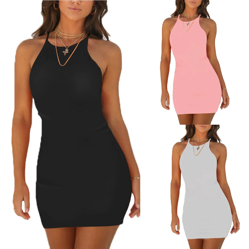 Однотонное летнее платье, сексуальное, с круглым вырезом, повседневное, облегающее, с открытыми плечами, короткое, обтягивающее, 2020, женские Клубные Вечерние