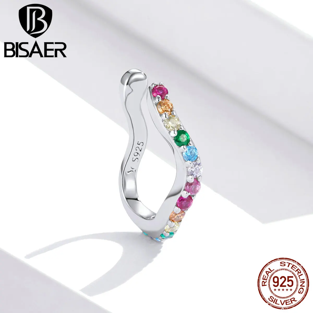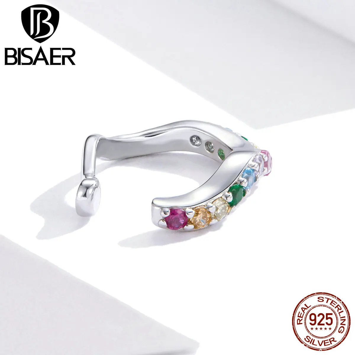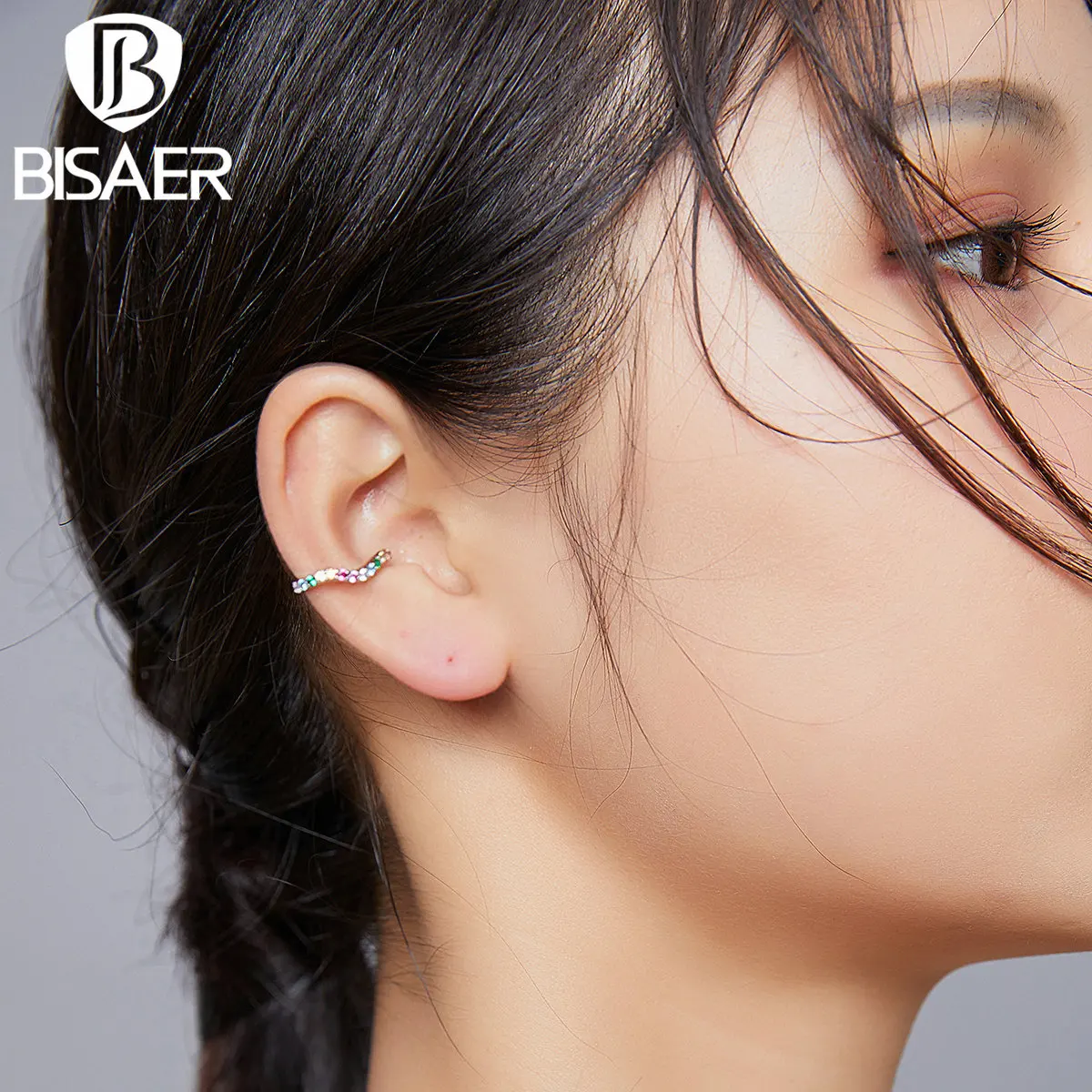 Женские серьги-манжеты BISAER из стерлингового серебра 925 пробы с разноцветным цирконием, свадебная бижутерия, 1 шт., ECE894