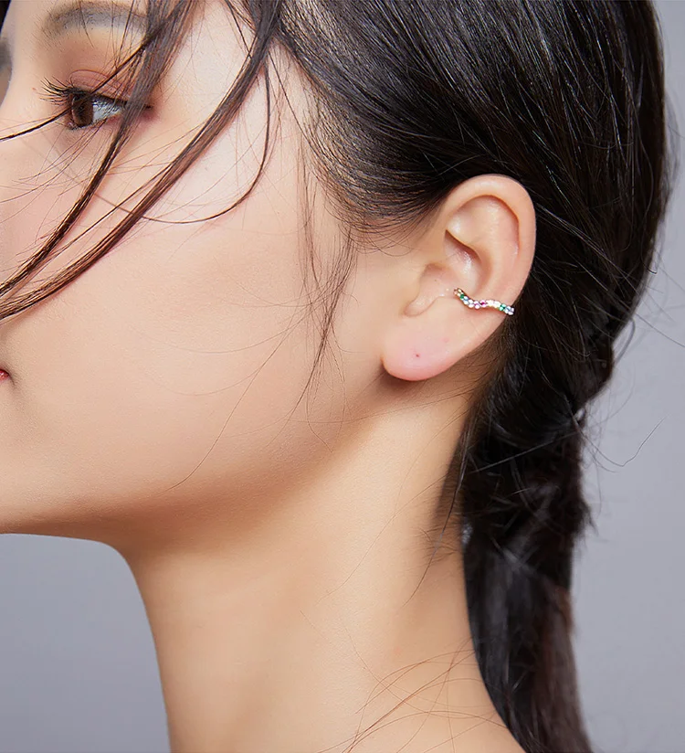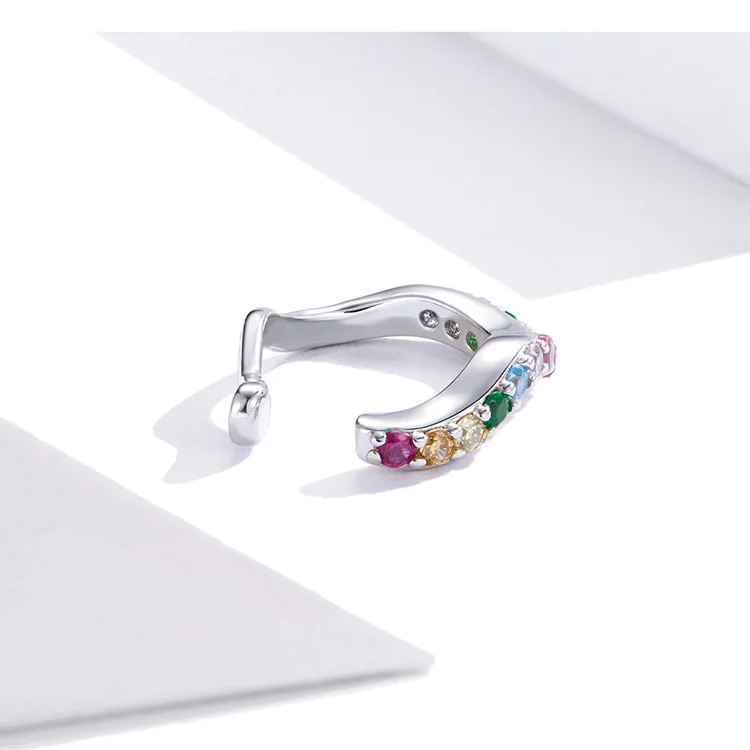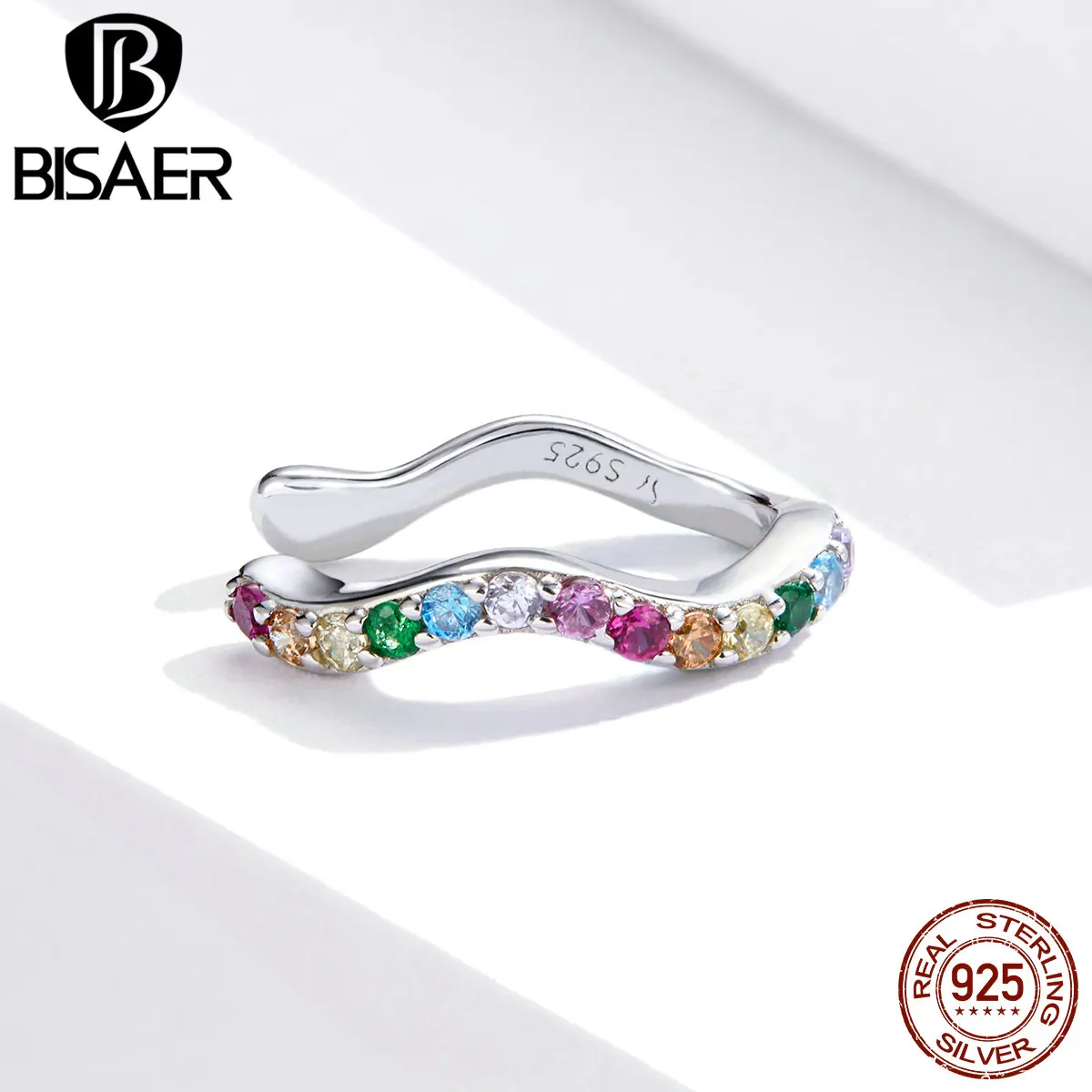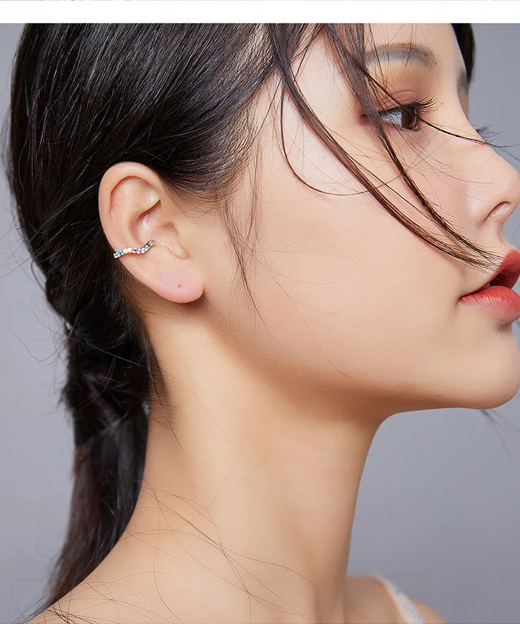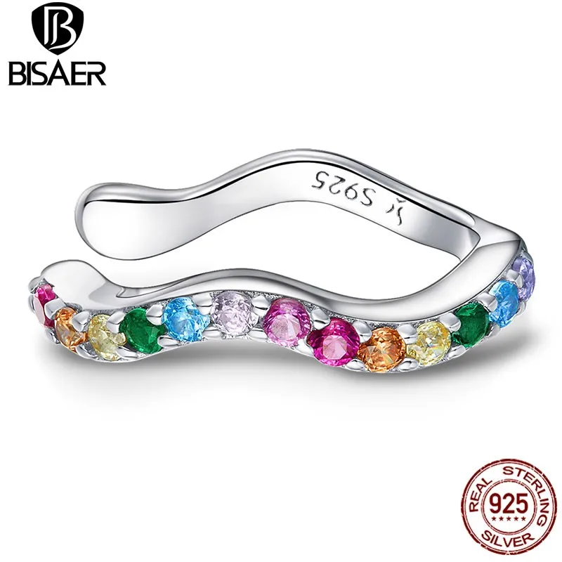 Женские серьги-манжеты BISAER из стерлингового серебра 925 пробы с разноцветным цирконием, свадебная бижутерия, 1 шт., ECE894
