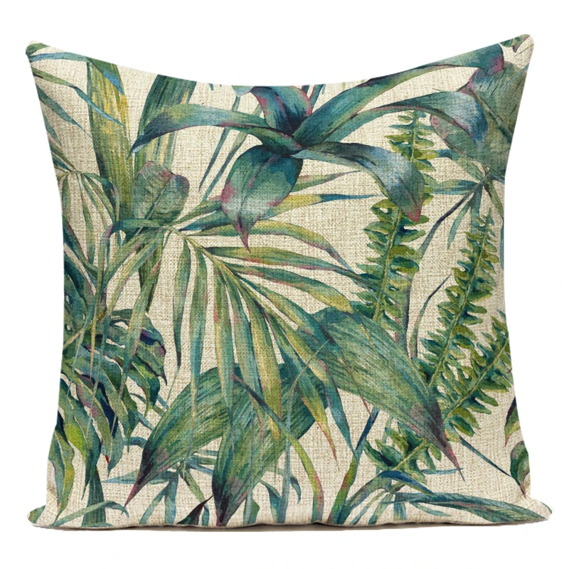 Декоративный чехол для диванных подушек, наволочка с зелеными тропи...
