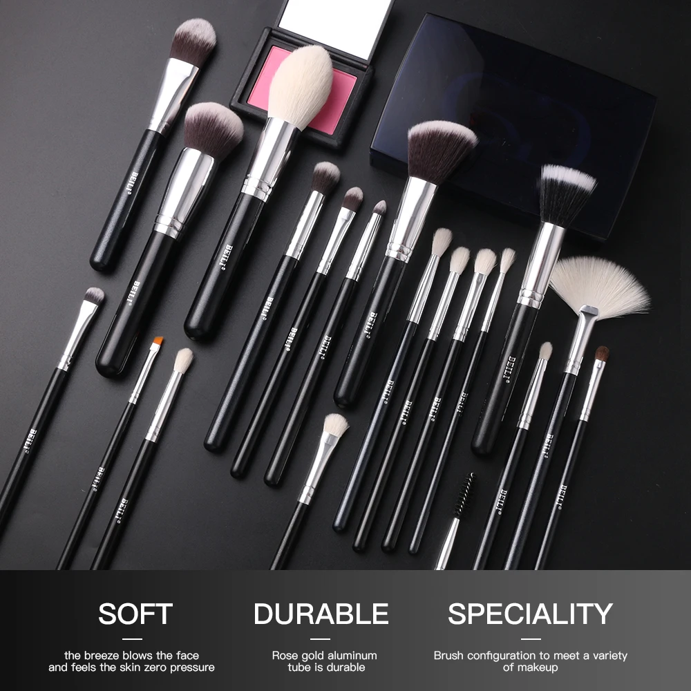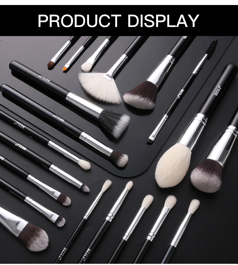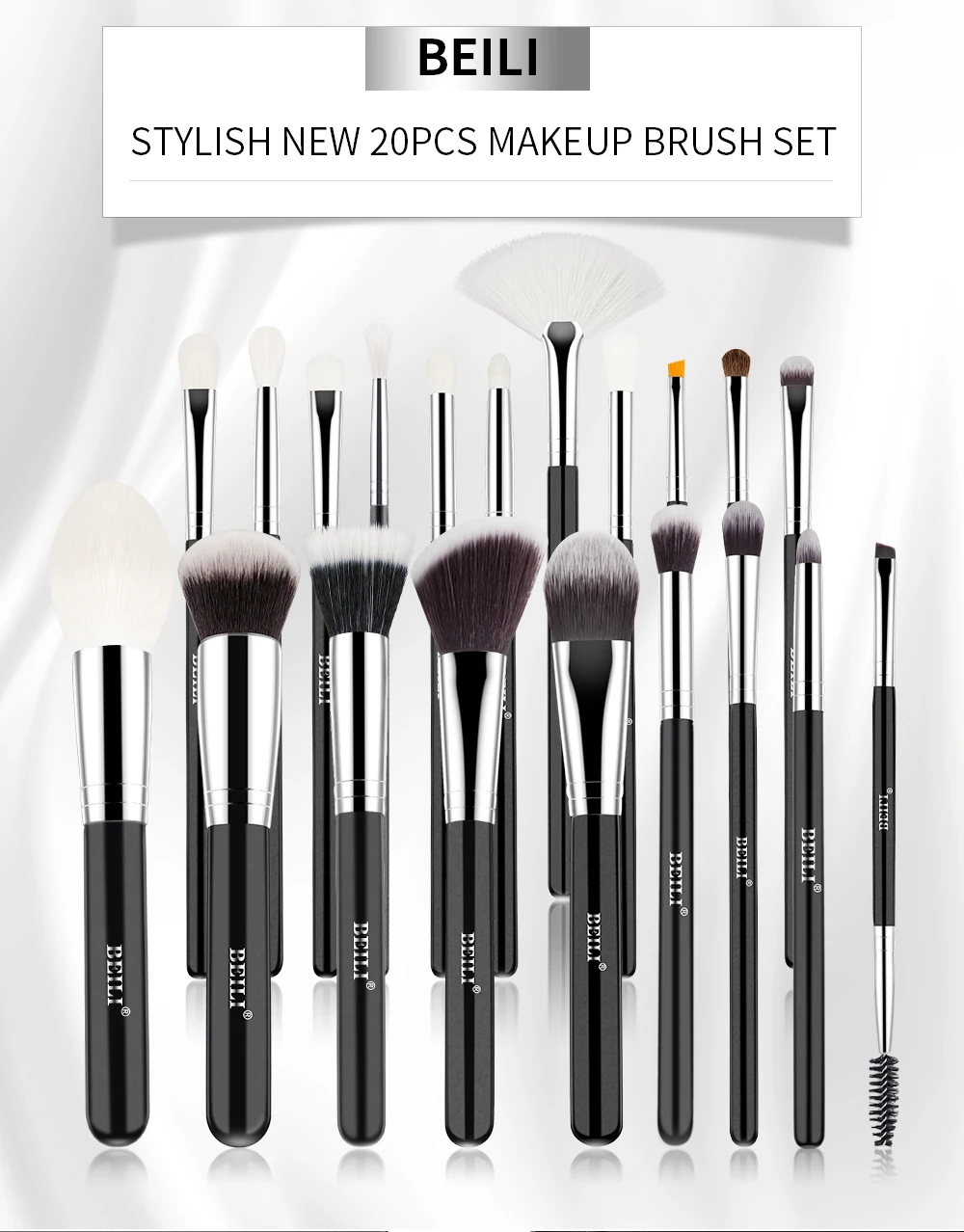Набор кистей для макияжа BEILI, 20 шт., черные веерные кисти из козы с ворсом для теней, кисти для пудры, консилера, основы для макияжа