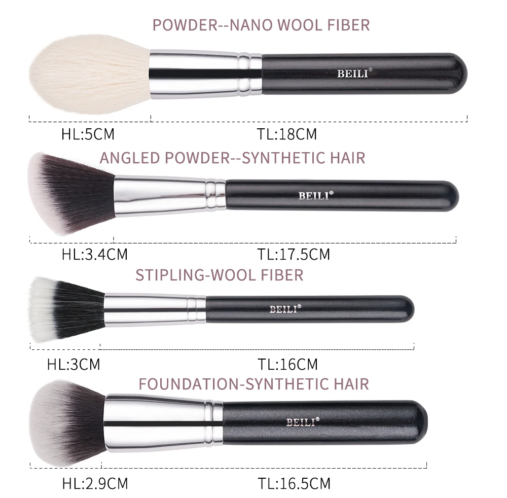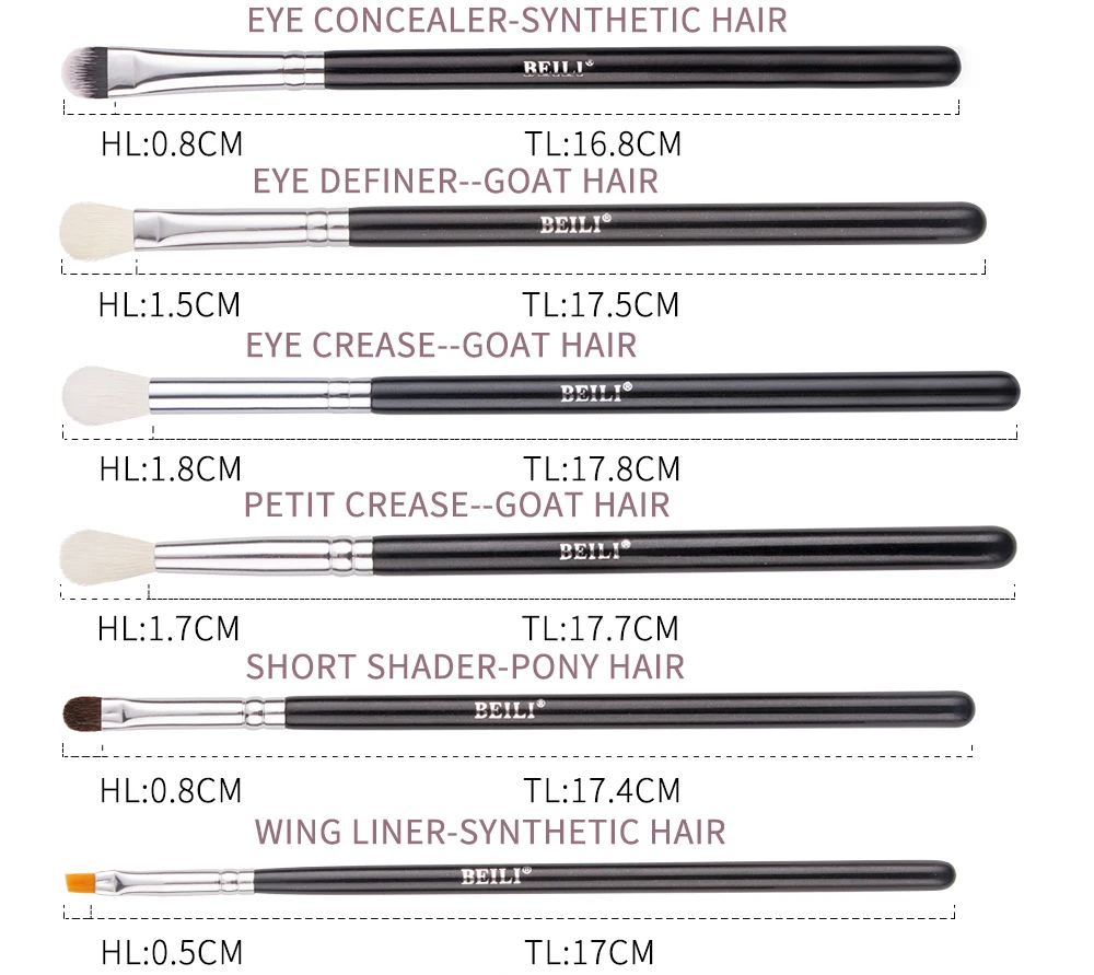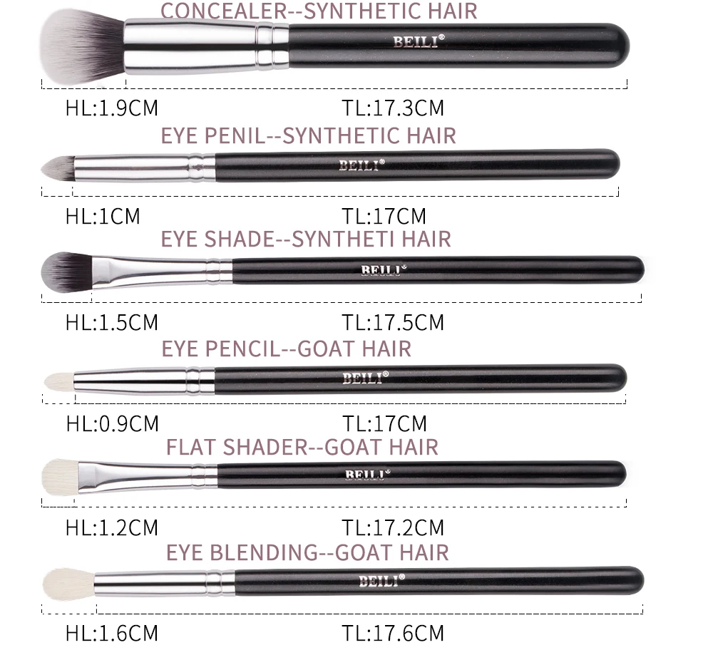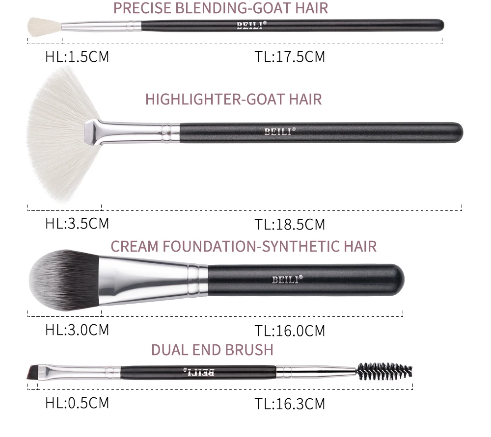 Набор кистей для макияжа BEILI, 20 шт., черные веерные кисти из козы с ворсом для теней, кисти для пудры, консилера, основы для макияжа
