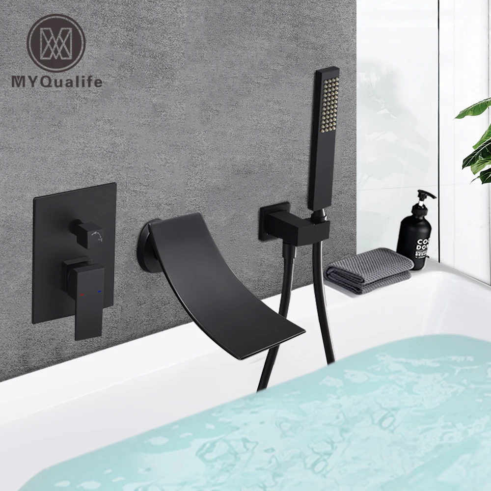 Черный смеситель для ванной myqualitfe, 2 функции, кран для ванны, настенный монтаж, кран для горячей и холодной воды