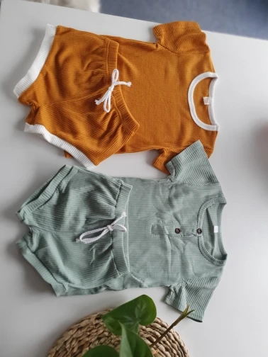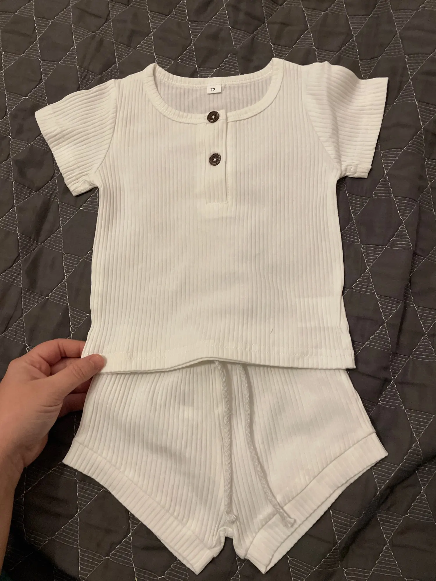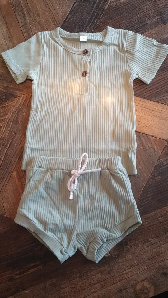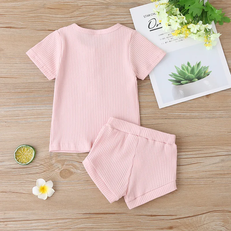Футболка и шорты, хлопковые, трикотажные, с коротким рукавом, в рубчик