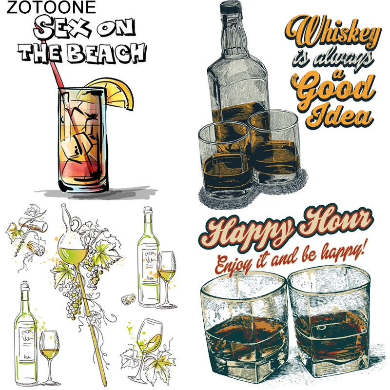 Термотрансферы для напитков и пива ZOTOONE, виниловые наклейки для глажки одежды, нашивки для одежды, Коктейльные аппликации сделай сам