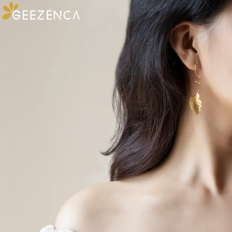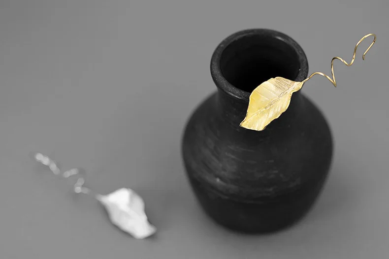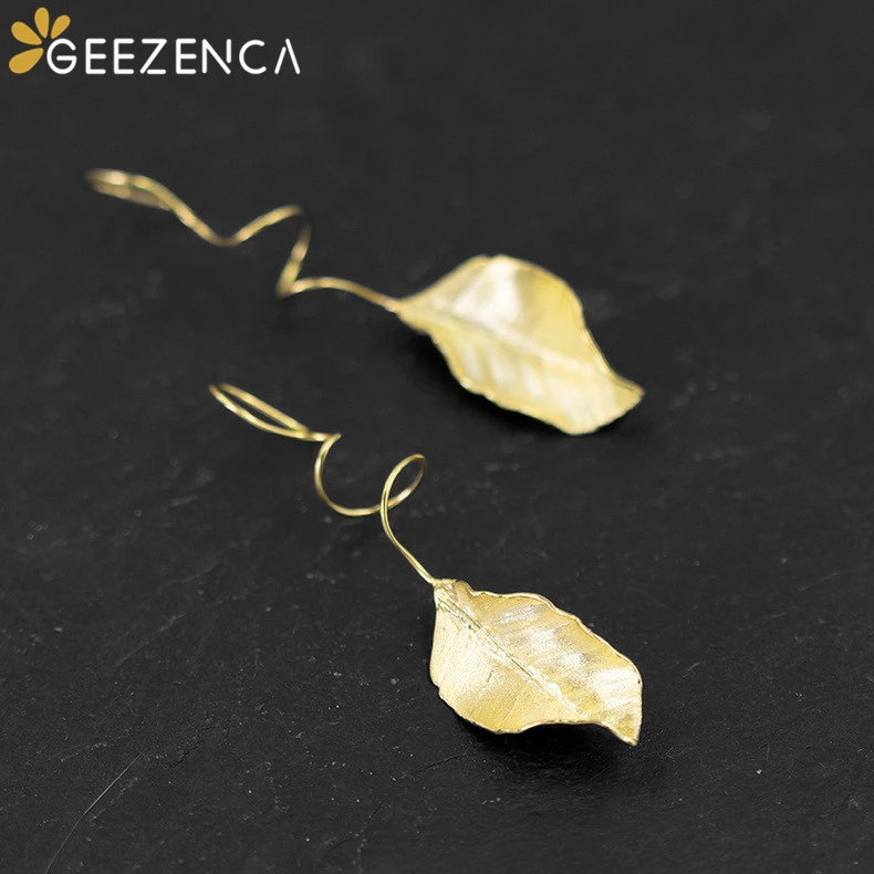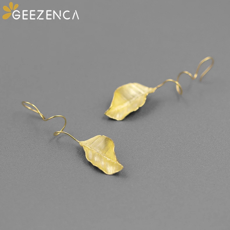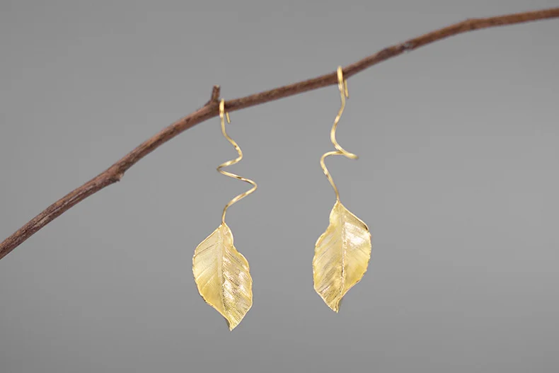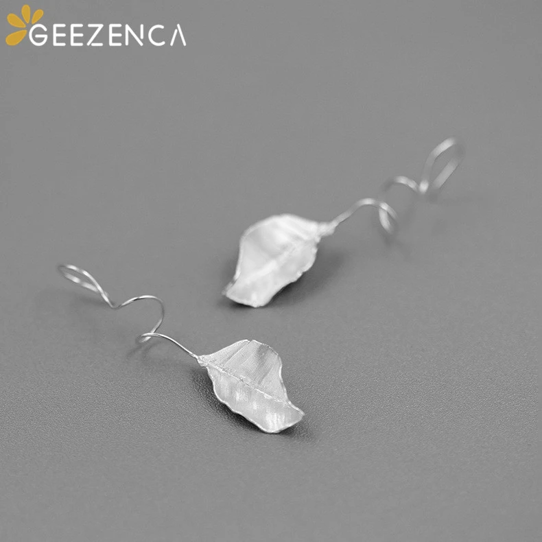 Женские серьги-капельки из серебра 925 пробы, с листьями
