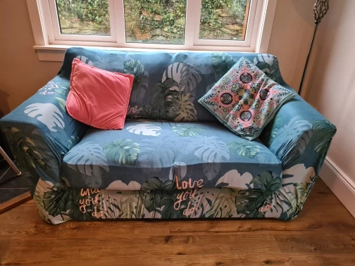 Товар отправили на следующий день после оформления, доставлен через 3 недели. С продавцом не общались. Материал приятный на ощупь, тонкий, лëгкий, запаха не было. Размер чехлов для дивана оказался великоват из-за чего по бокам сборит, возможно, стоило взять размер поменьше, но в целом это не проблема, Что-то можно придумать.
