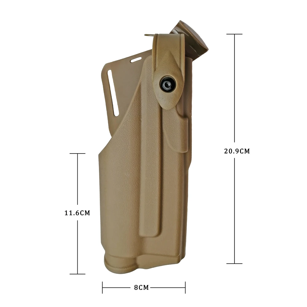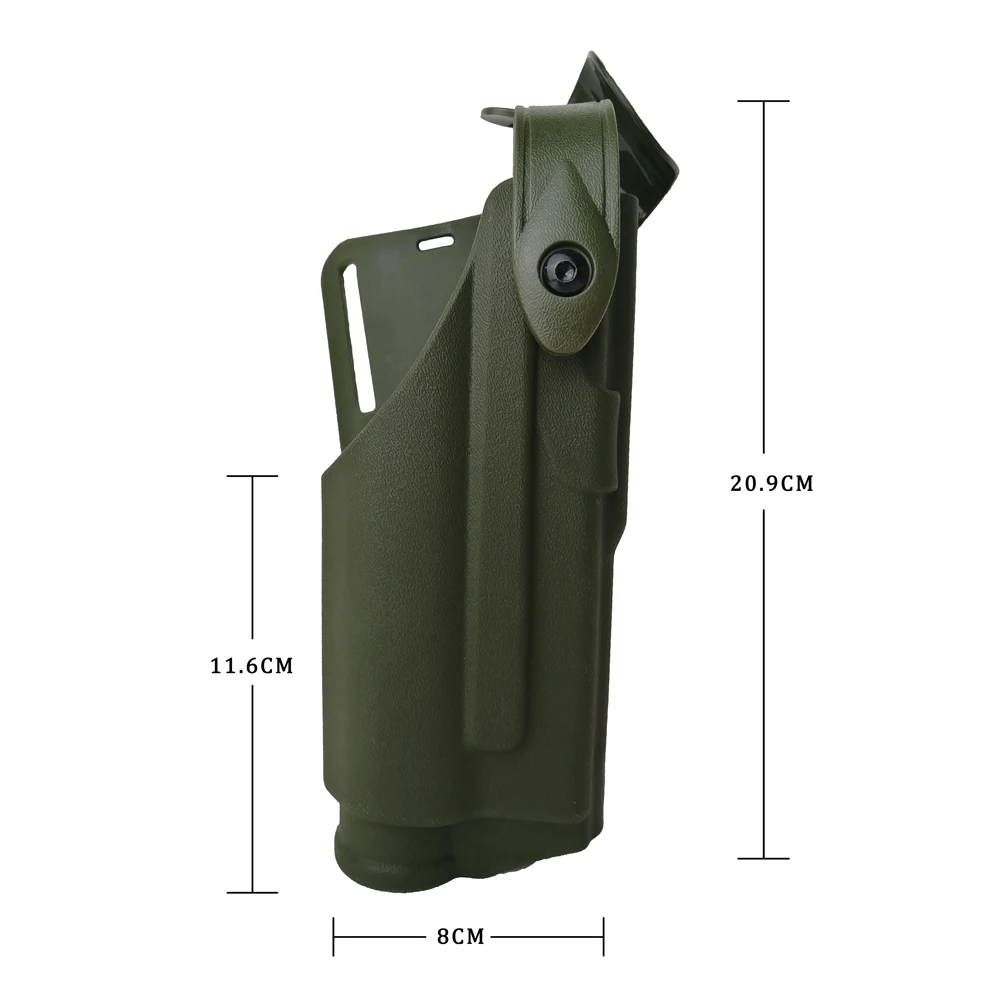 Описание: Кобура Для Пистолетов Glock с фонариком безопаснее, чем другая кобура из-за защитной пряжки. Изготовлено из высокопрочного полимерного материала, точно формованного дизайна и быстрого вырезания, регулируемое удержание, хорошо и тонко. Кобура висит на поясе, так что нет трения, и это не повредит вашу кожу. Это сделает вас привлекательным и крутым. Параметры: Материал: Высокопрочный полимерный материал Подходит для: Glock 17 19 22 31, 32 Точная формованная конструкция и быстрое вырезание скорости Посылка включает в себя: -1 x кобура для пистолетов TOtrait Glock с фонариком