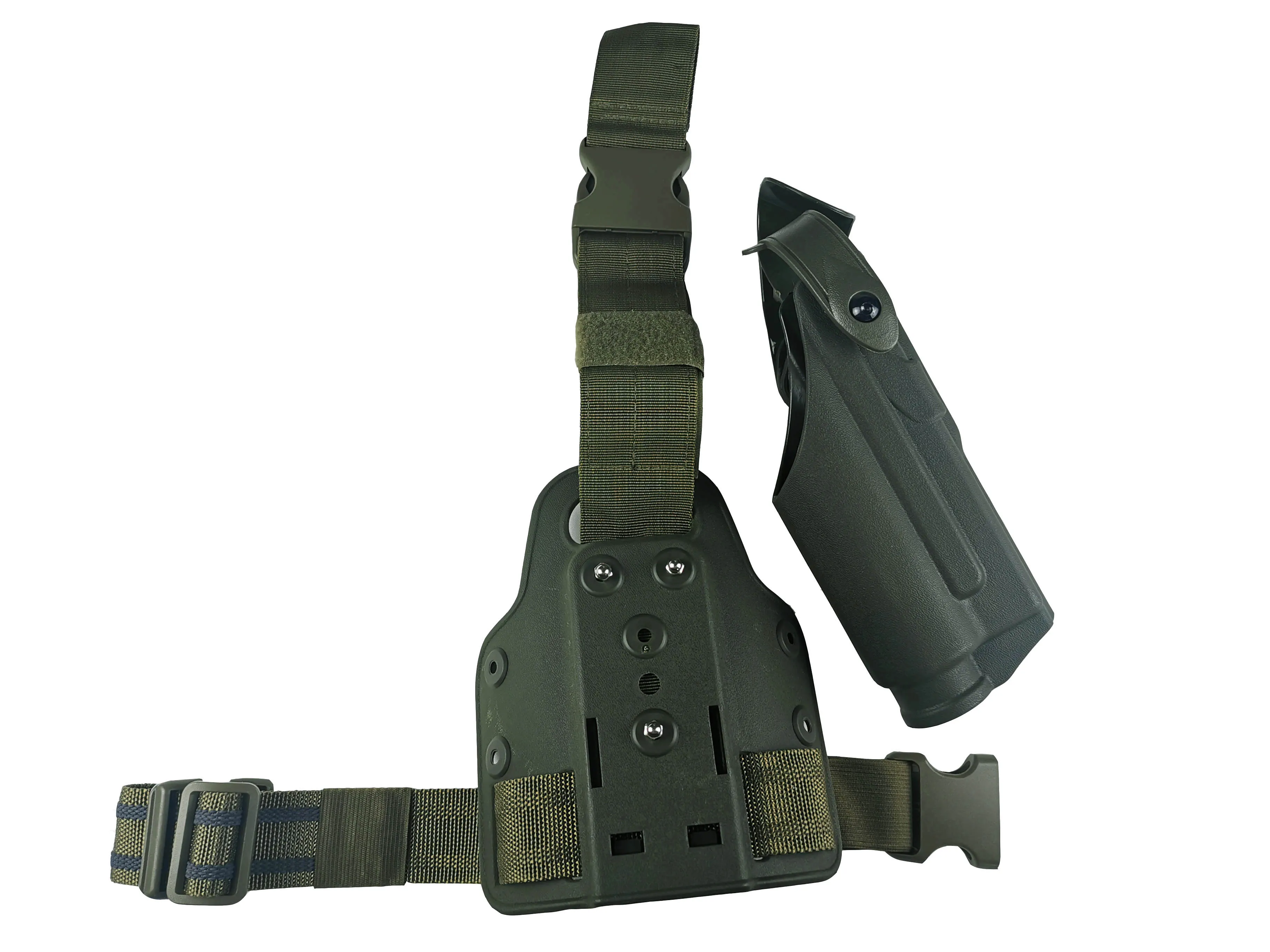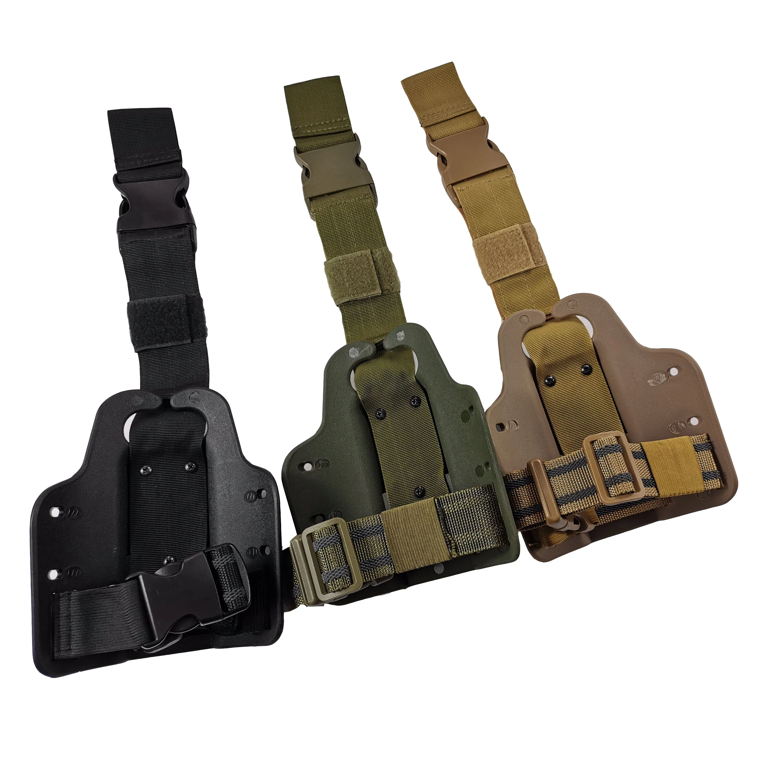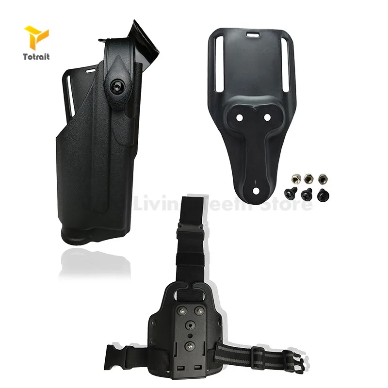 Вы можете установить любую кобуру для пистолета с 3 отверстиями в форме т к этому устройству и установить дополнительные аксессуары к нему. Например, кобура Beretta M9/Glock 17/19/Colt 1911/USP/P226. Весло изготовлено из высокопрочного полимерного материала, а шлейки для ног изготовлены из нейлона, что сделает вас привлекательным и крутым.