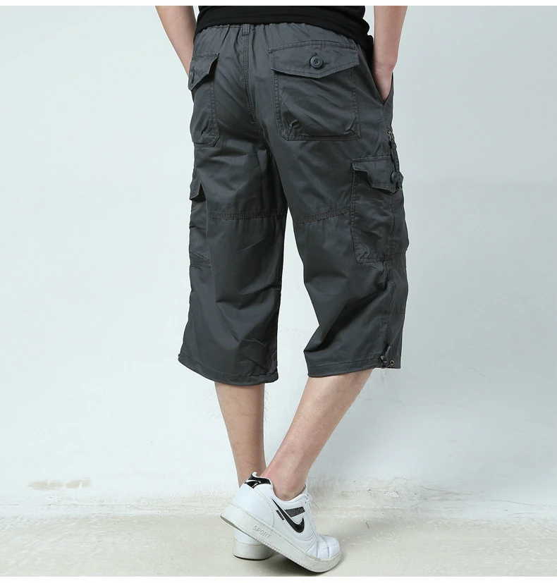 Шорты-карго на молнии в стиле милитари мужские мешковатые с несколькими карманами, модные бриджи, Длинные мужские тактические шорты цвета хаки, тактические короткие размера плюс, 5XL, 52, лето