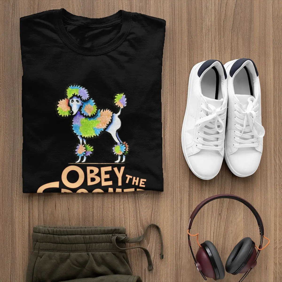 Футболка мужская с рисунком пуделя, хлопковая тенниска с надписью Obey The Groomer, модная шикарная майка с коротким рукавом
