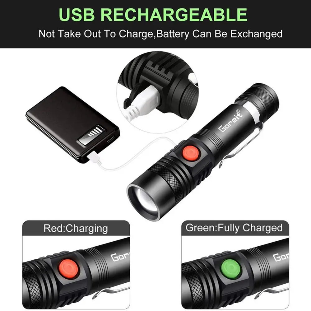 ZHIYU перезаряжаемый фонарик, светодиодный тактический фонарь, 1200лм супер яркий Карманный T6 светодиодный фонарь с зажимом, водостойкий