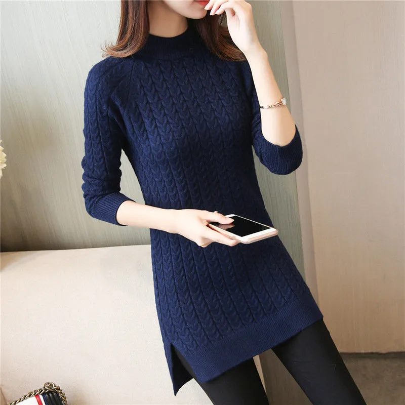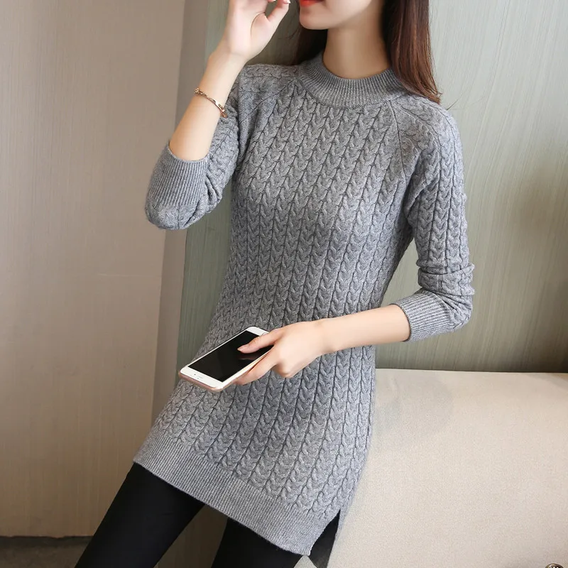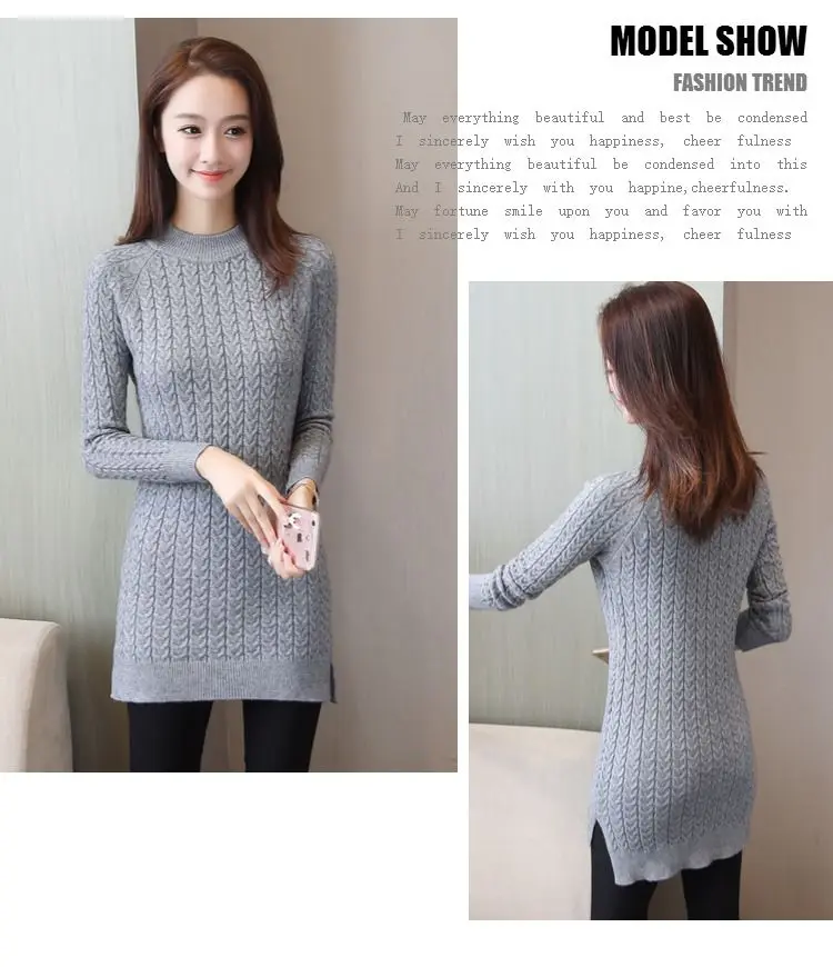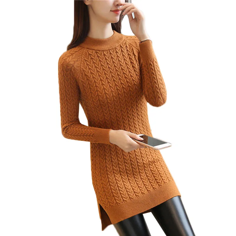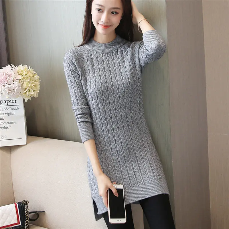 Пуловер женский средней длины, однотонный вязаный свитер с разрезом на бедрах, облегающий джемпер, H125, Осень-зима