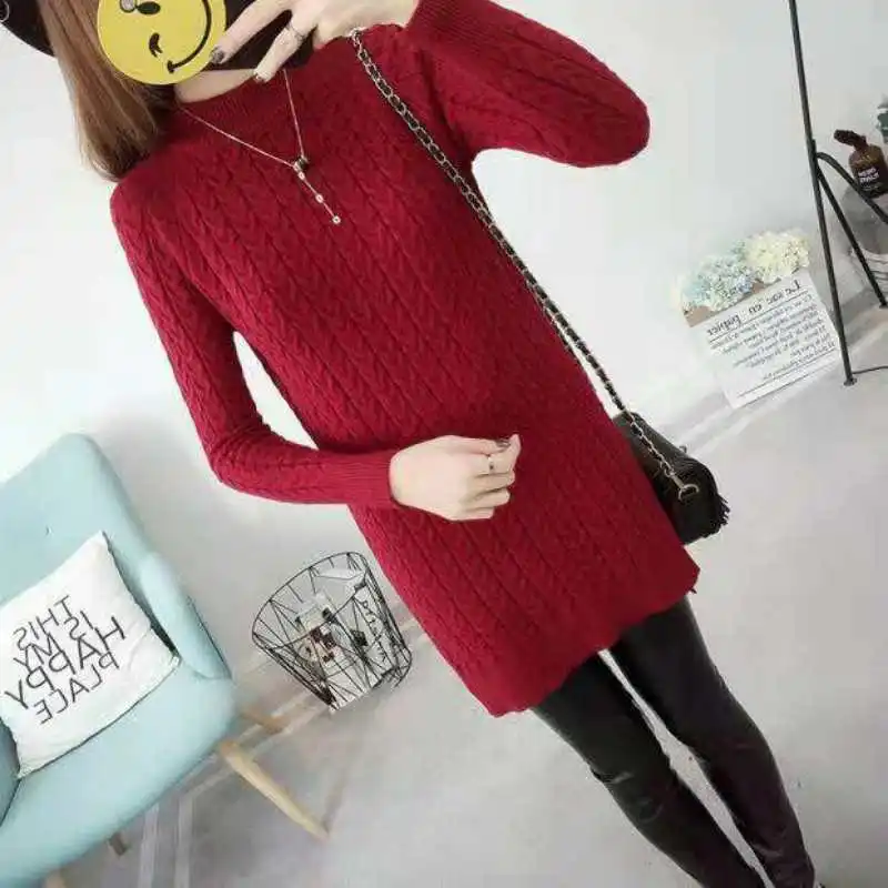 Осенне-зимний женский свитер, пуловер, новый однотонный вязаный сви...