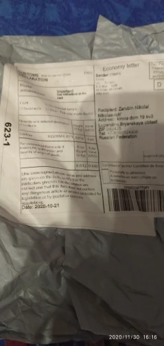 Страна: RU Color: 10 Ships From: China Доставка: Seller's Shipping Method 07.11.2020