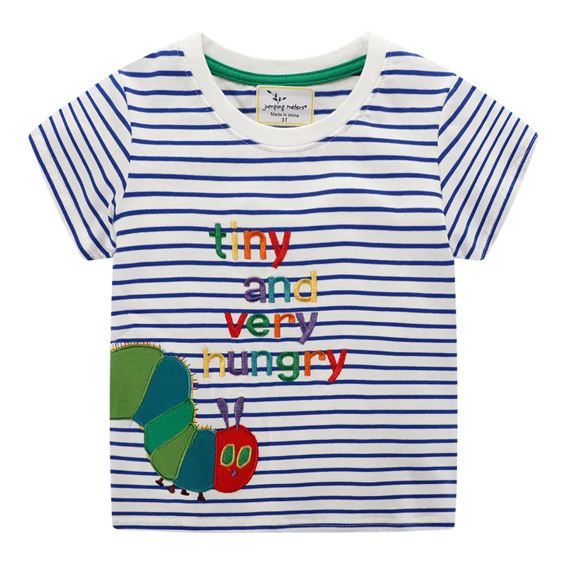 Детская летняя хлопковая футболка, в полоску, с вышивкой