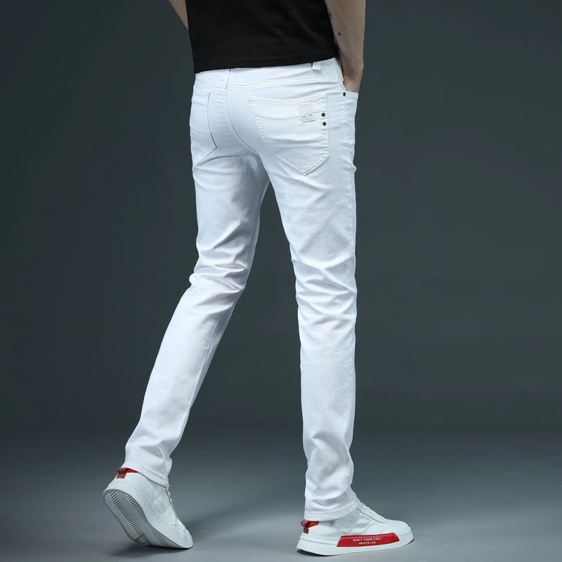 2020 узкие джинсы, мужские однотонные белые мужские джинсы стрейч, повседневные мужские модные джинсовые брюки, повседневные Молодежные брюки для мальчиков Yong, размер 38