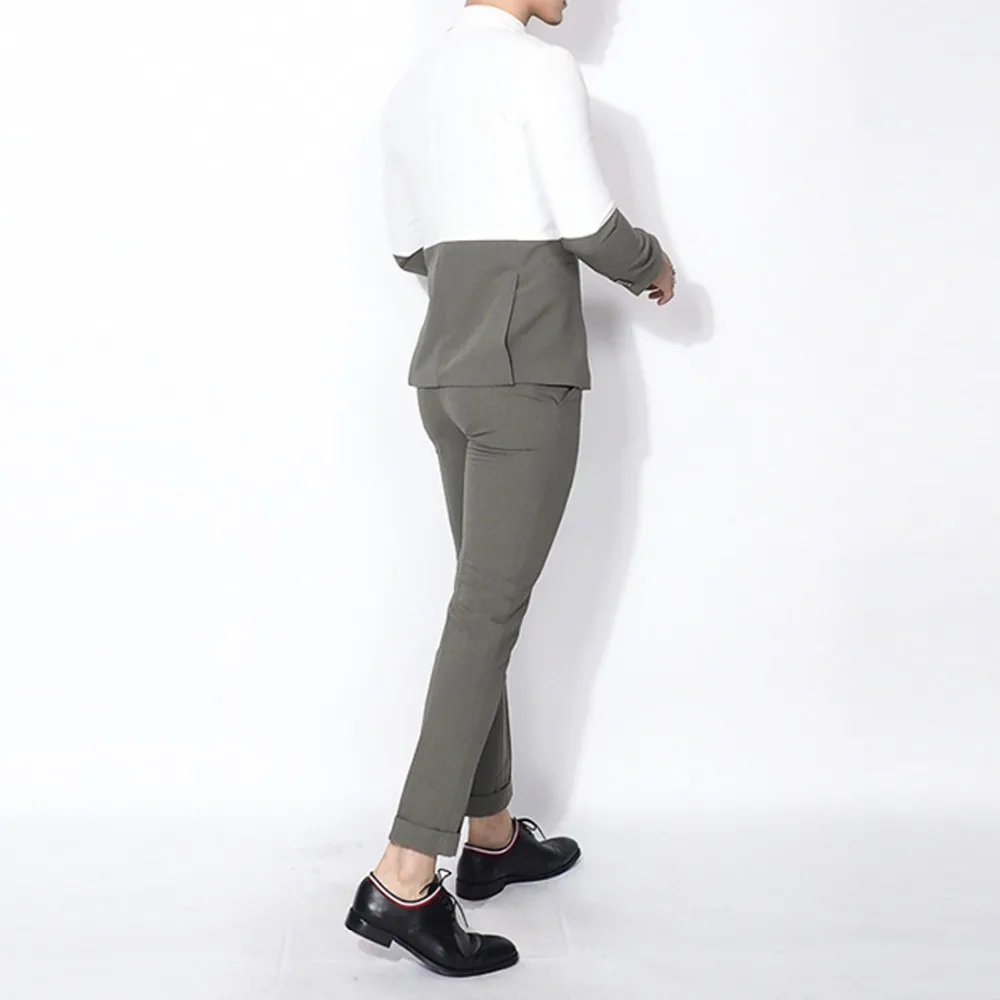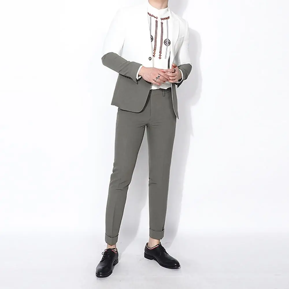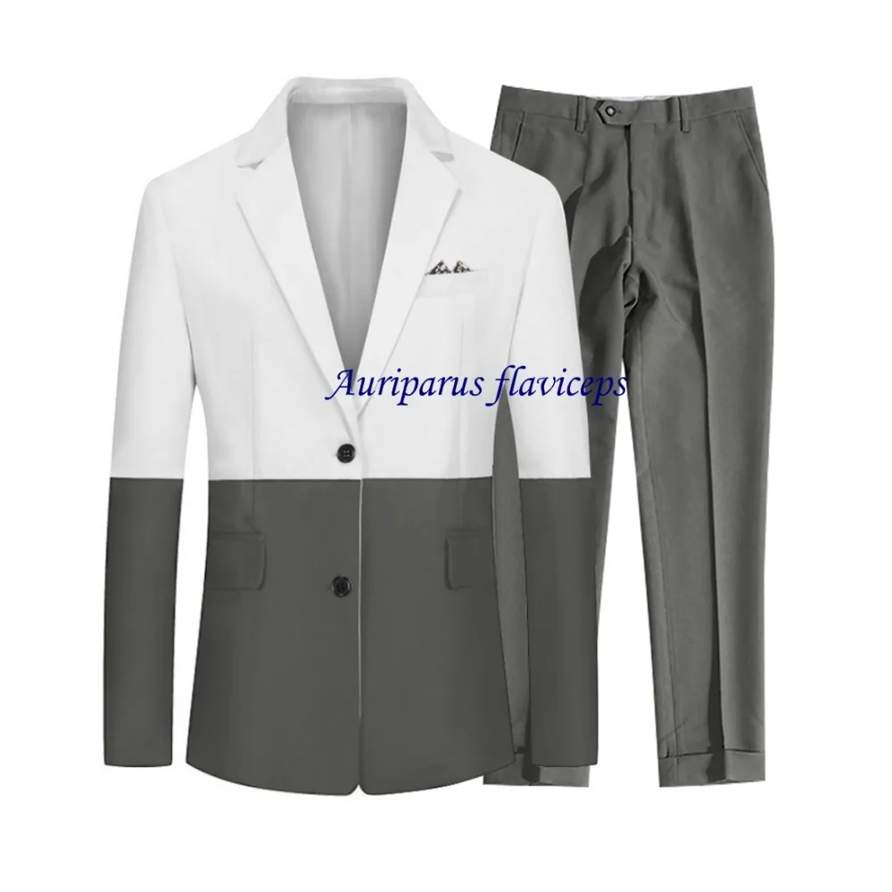 Мужской однобортный костюм, Свадебный костюм серого и белого цветов, смокинги для жениха (пиджак + брюки)