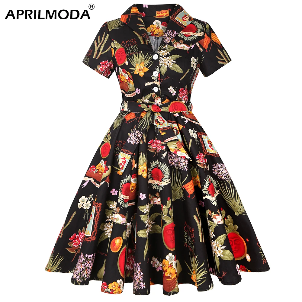 2021 халат рокабилли платье средней длины длинный хлопковый сарафан-туника Повседневная винтажная Летняя Вечеринка 60s 50s большие качели Vestidos