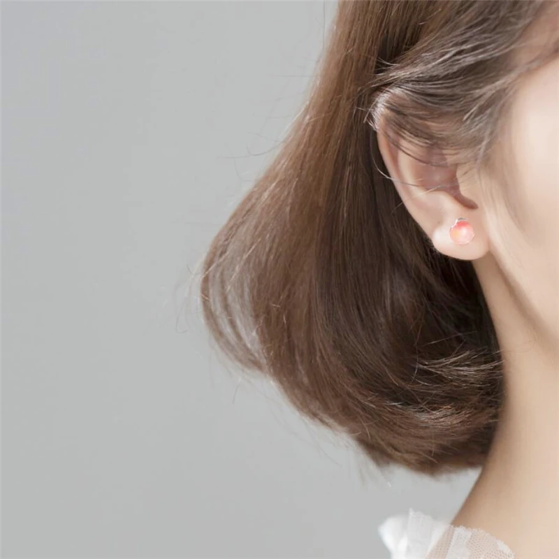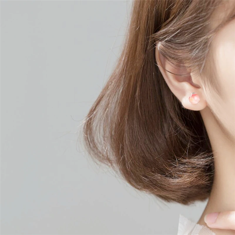 Женские серьги-гвоздики из серебра 925 пробы, с розовыми акриловыми фруктами