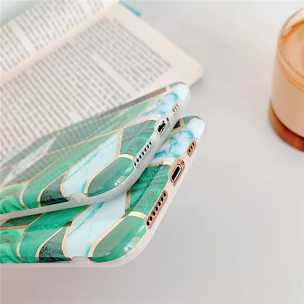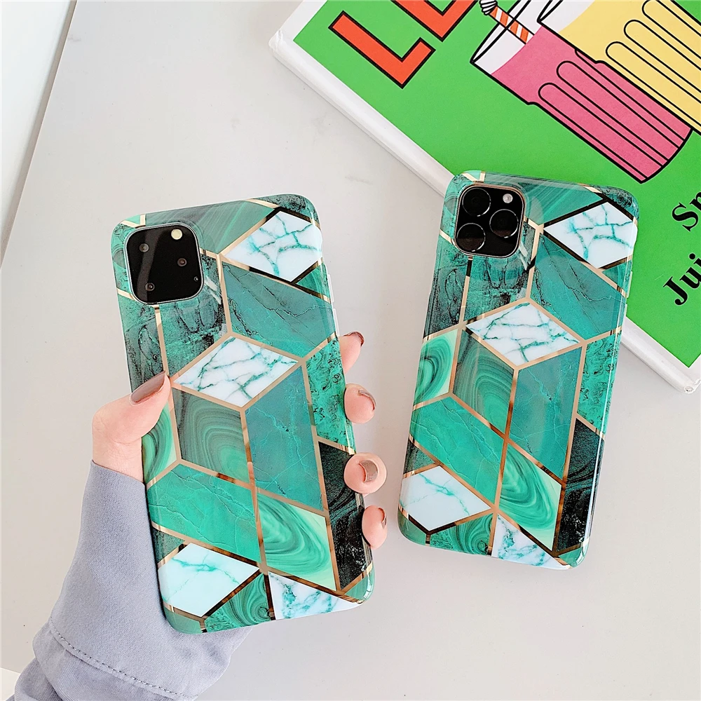 Чехол для телефона с геометрическим рисунком под мрамор для iphone 12 11 6 6S 7 8 Plus X XR XS 11 Pro Max SE 2020, глянцевый мягкий IMD чехол-накладка