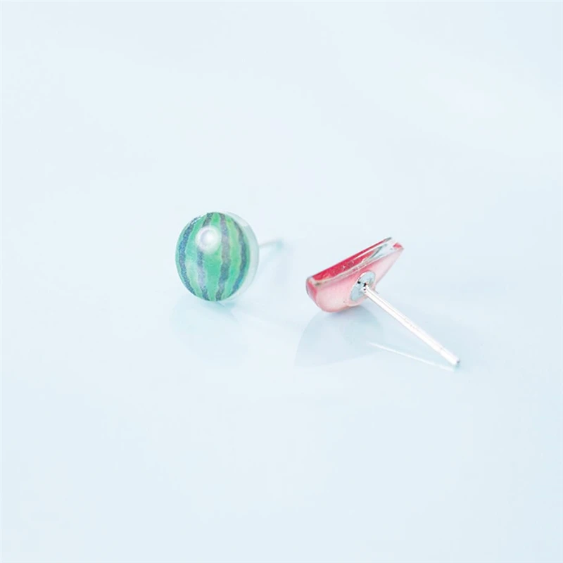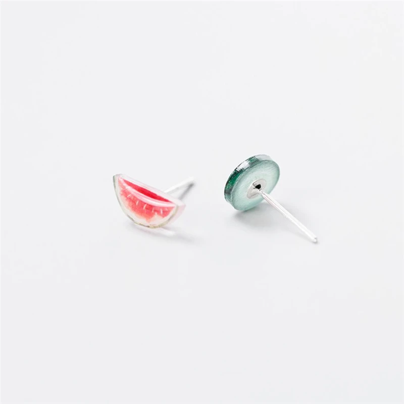 Женские летние серьги-гвоздики из серебра 925 пробы с фруктами