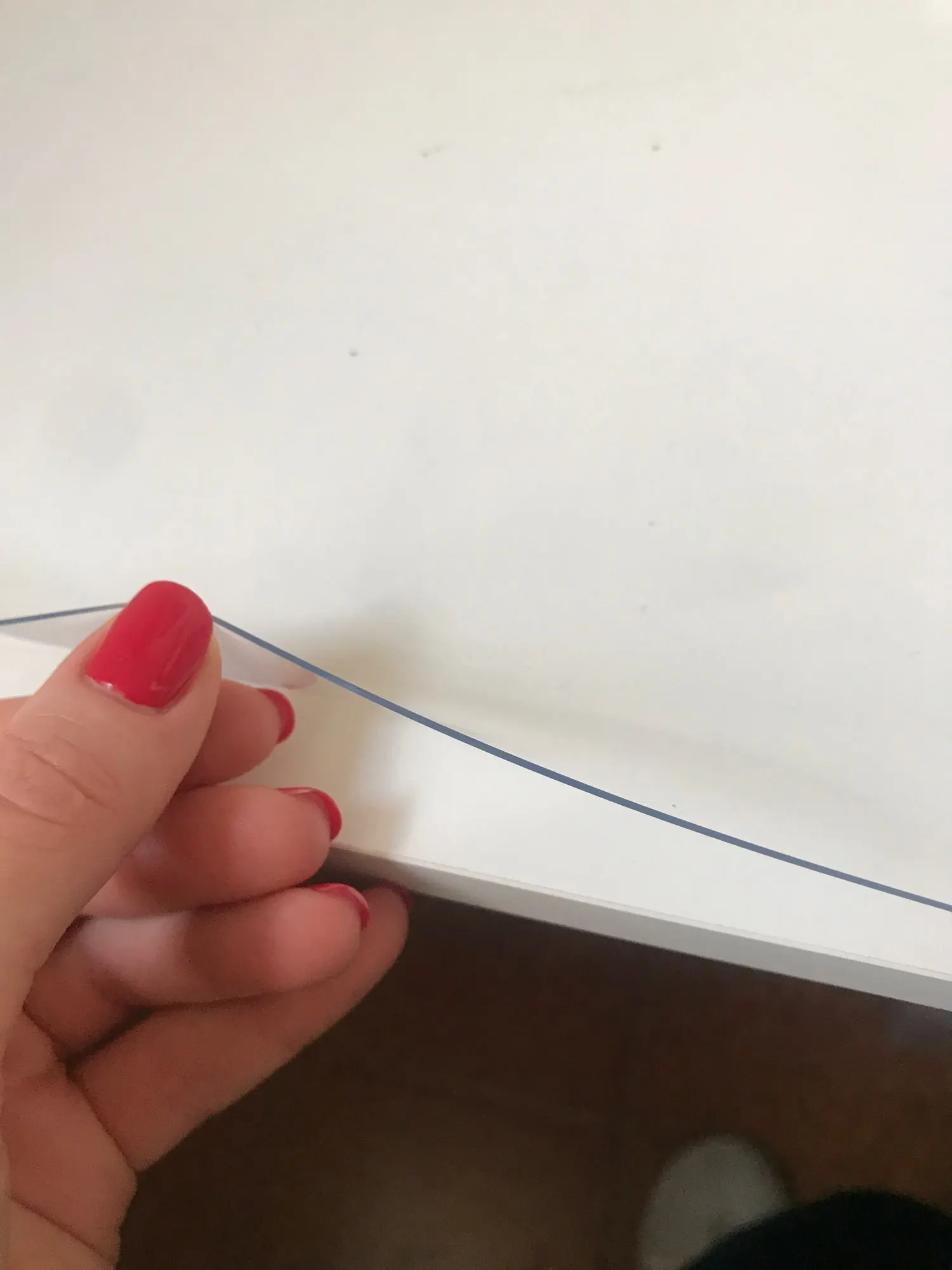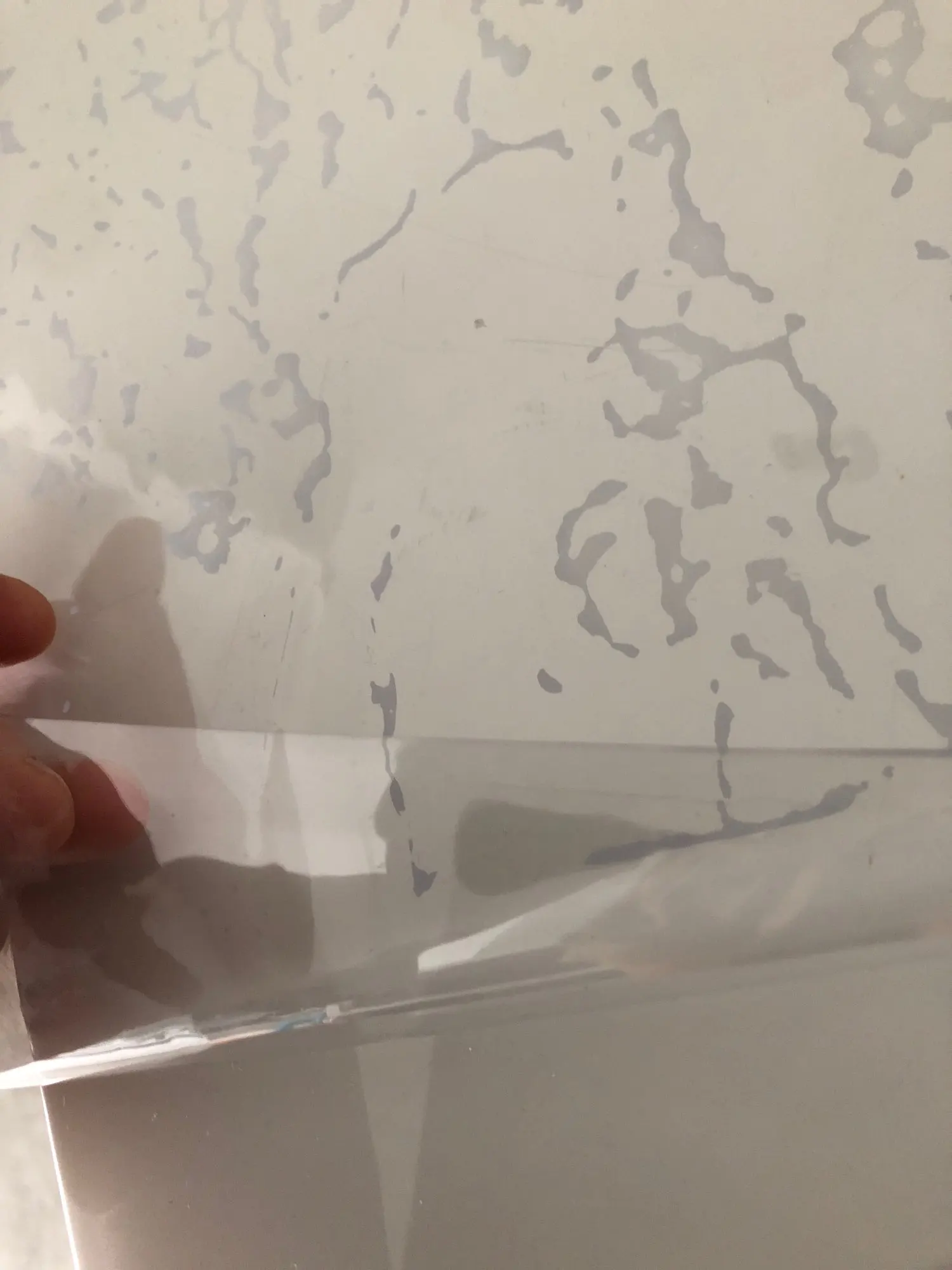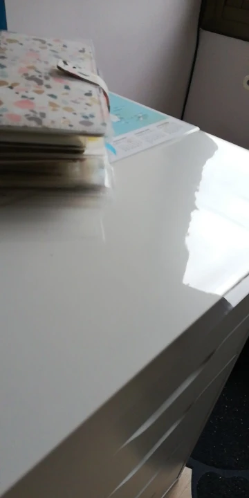 очень быстрая доставка. Практически моментально курьером на дом. все хорошо, пленка не клееночка, но при соприкосновении со столом и когда прижала горячей кружкой, видны серые следы прямого наиболее плотного соприкосновения с поверхностью стола. а так круто- за счёт загибов по краям даже обрезать не пришлось.