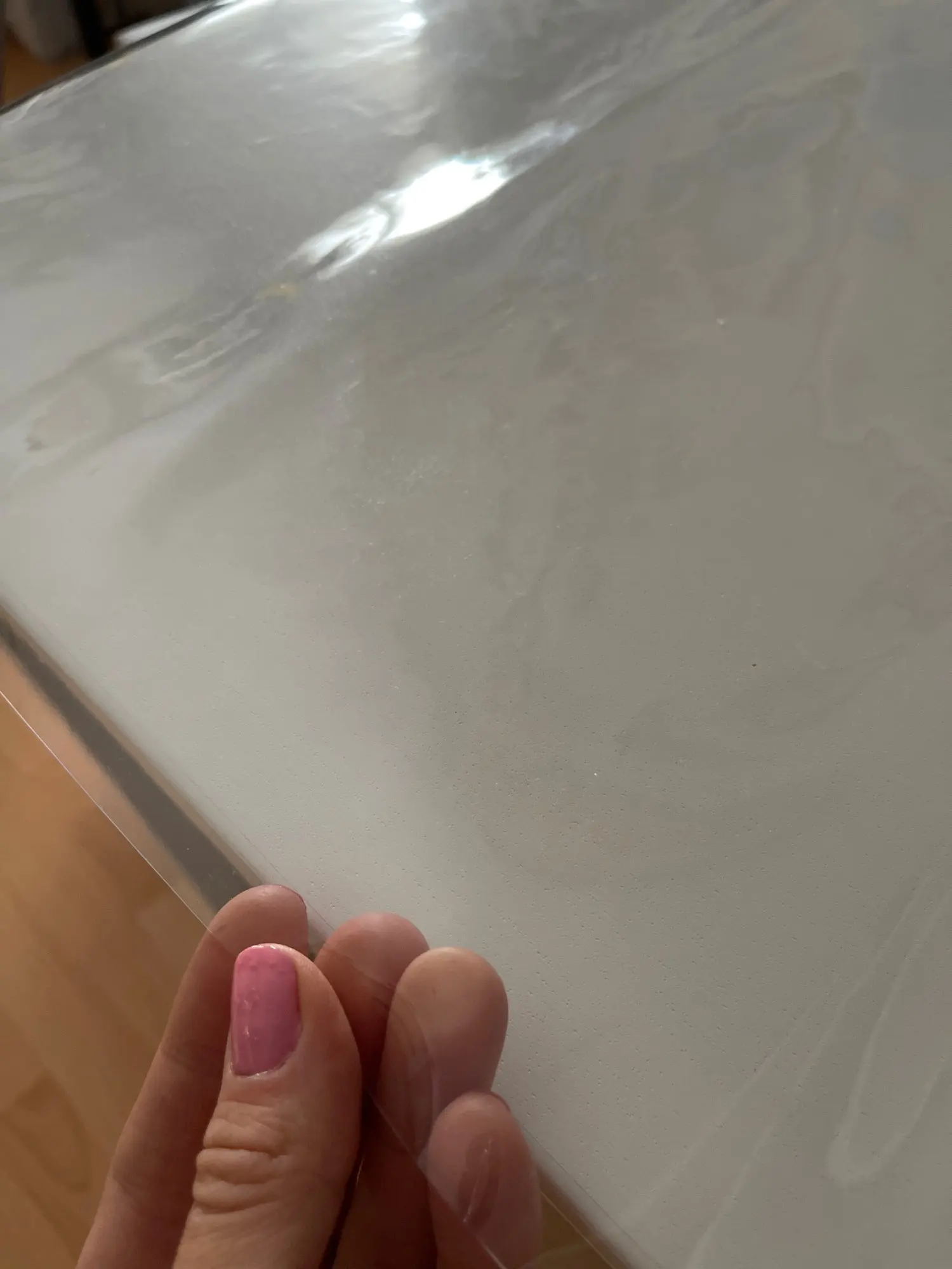 доставка быстрая. наклеил на стол при помощи очистителя для стекол без него не получалось, на вид как и нет ничего. чуть ошибся с шириной но это мой косяк пока выбирал запутался в размере.посмотрим как покажет себя в использовании.