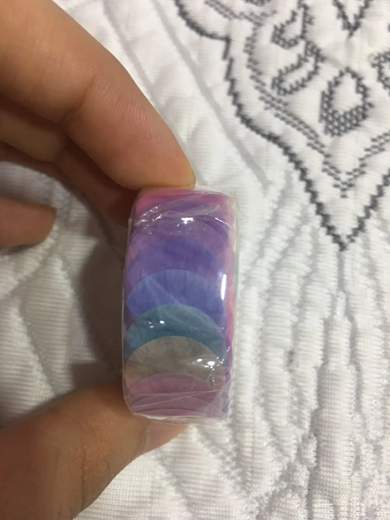 Они прибыли в США в течение трех недель, они меньше пигментированы и более приглушены, чем показано в описании, но это все еще хороший цвет. Они являются материалом для маскировки ленты и не могут быть легко записаны, но являются полупрозрачными.