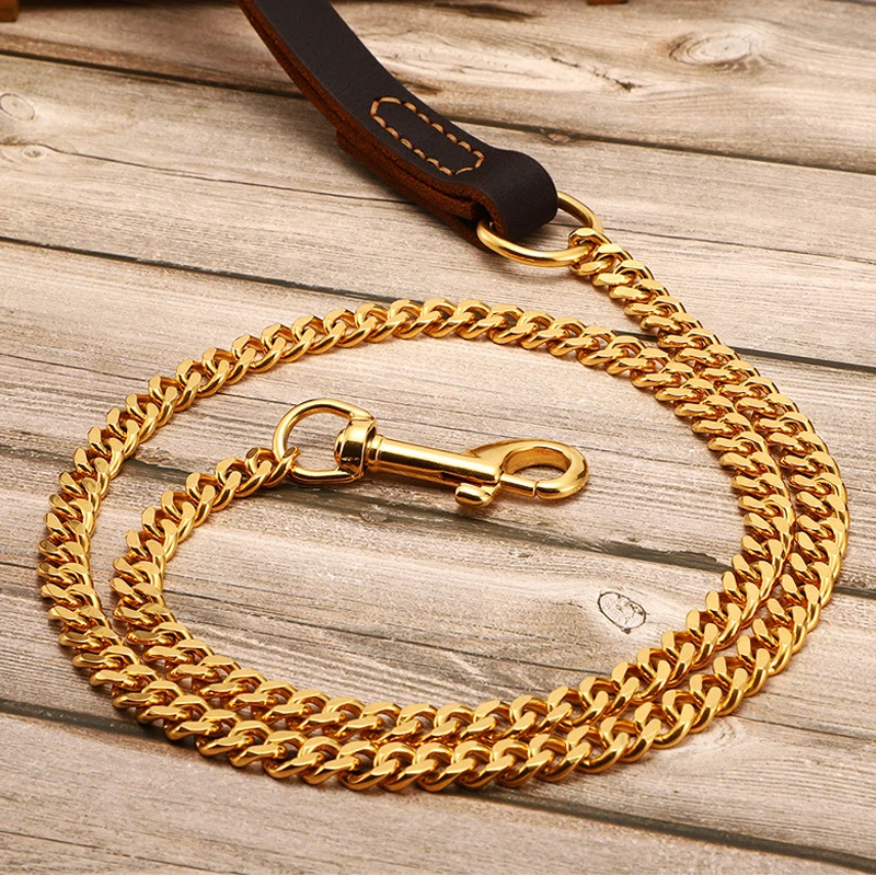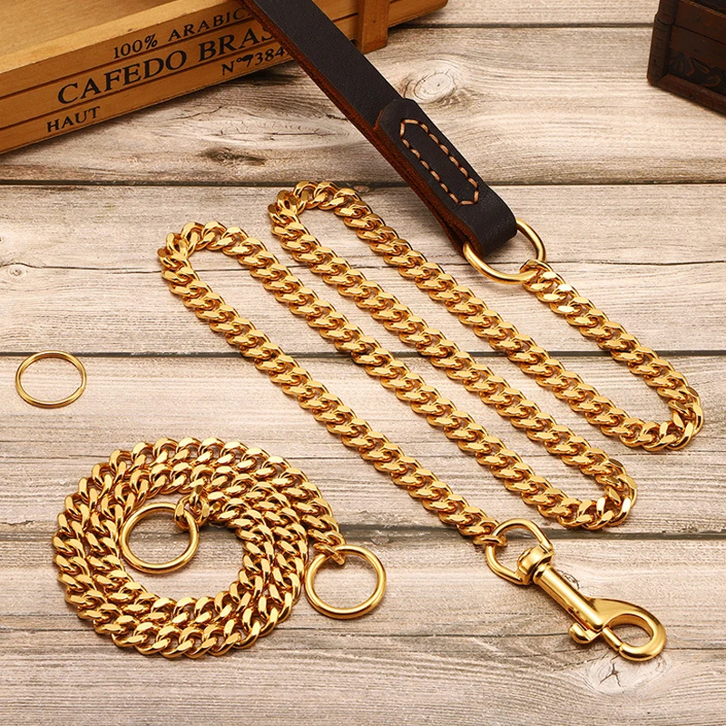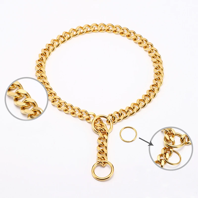 Позолоченный ошейник для собак из нержавеющей стали, цепь для собак, для немецкой овчарки, металлические ошейники, поводок, набор для домашних животных, тренировочный для больших собак