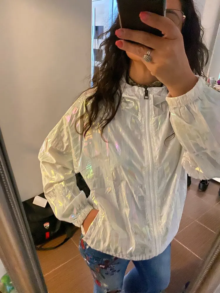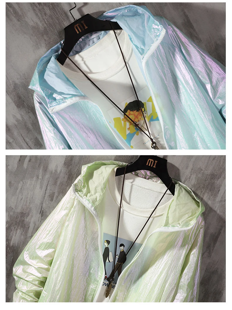 Женская Базовая куртка, лето 2021, цветная Светоотражающая тонкая ветровка, Женская куртка с капюшоном, пальто на молнии, женский жилет