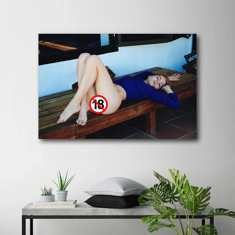 Обои для красивых девушек, сексуальная женщина, лежа на деревянной скамейке, художественные постеры для взрослых, холщовые настенные картины для домашнего декора комнаты