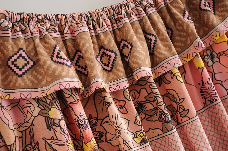 Винтажная шикарная Женская пляжная юбка в стиле хиппи с цветочным п...