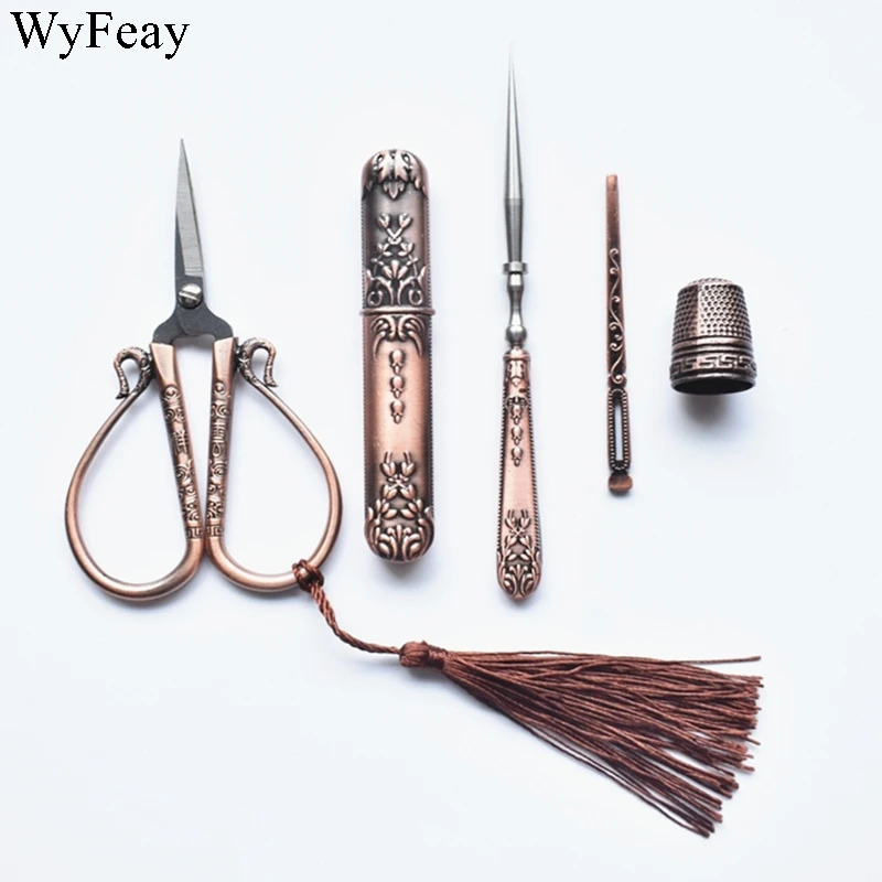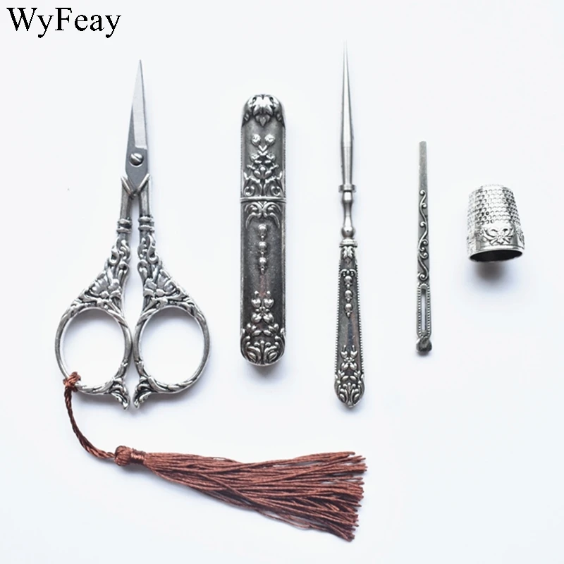 Набор ножниц в стиле ретро, винтажные ножницы, трубка для хранения игл, наперсток, нить для вышивания, портновские ножницы, швейные инструменты сделай сам