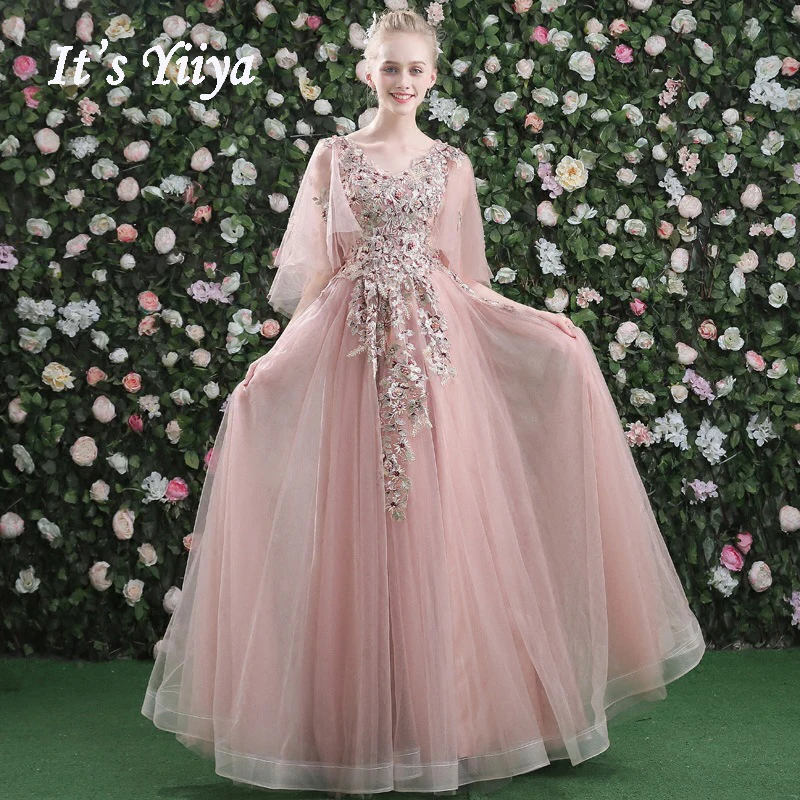 Длинное вечернее платье It's Yiiya, роскошные вечерние платья с V-образным вырезом, лето с аппликацией, отделкой бисером, размера плюс