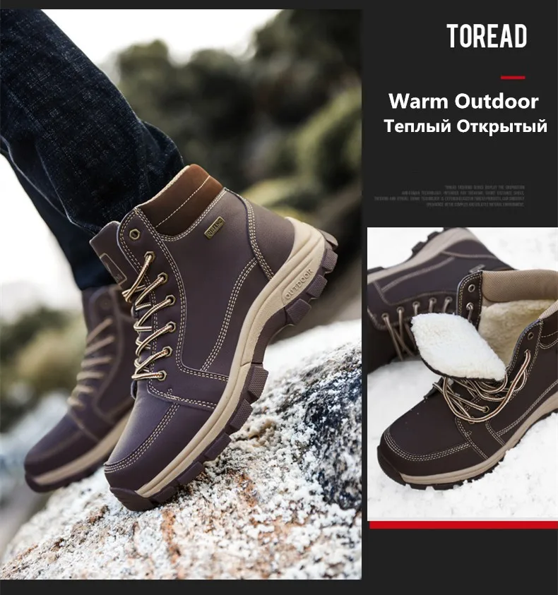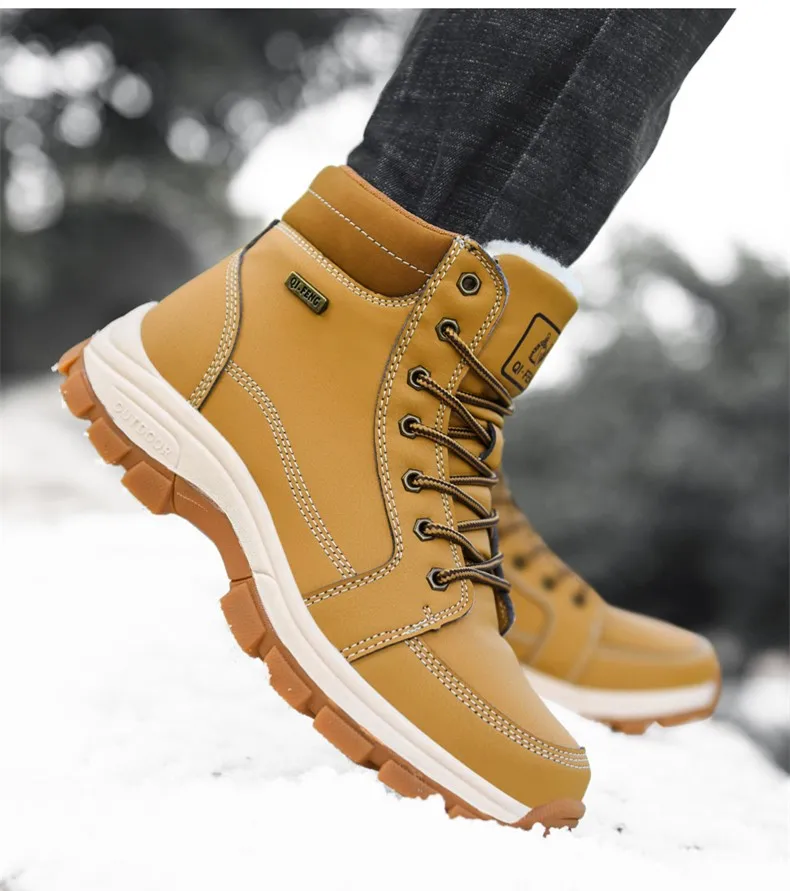 Ботинки мужские зимние с плюшем, Нескользящие, теплые, уличные кроссовки, кожаные, для снега, размеры 39-48