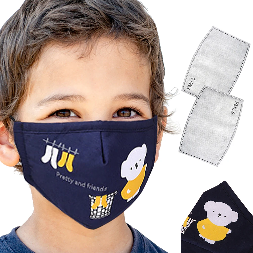 Многоразовые защитные маски для детей, мультипликационные цветные маски для лица с фильтром