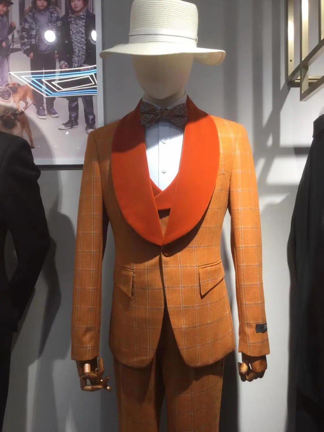 Brown Plaid men suits