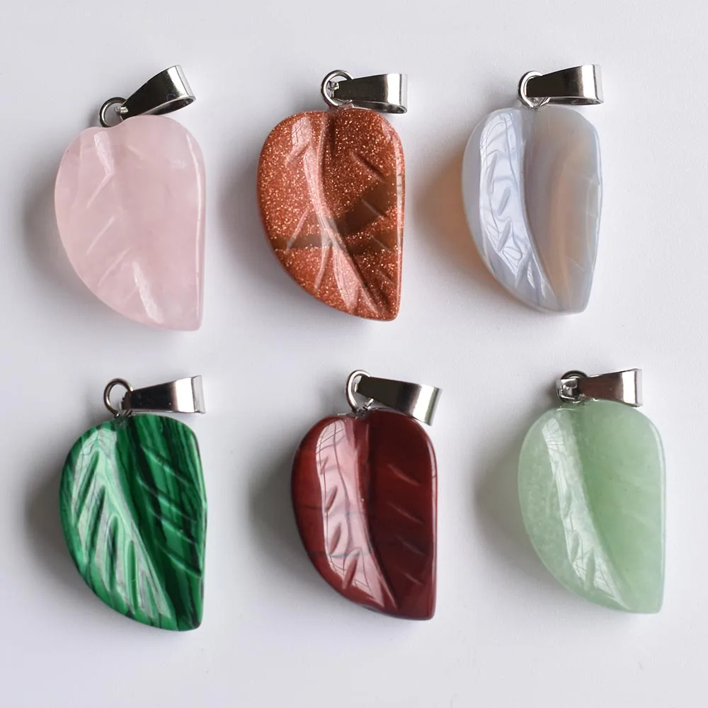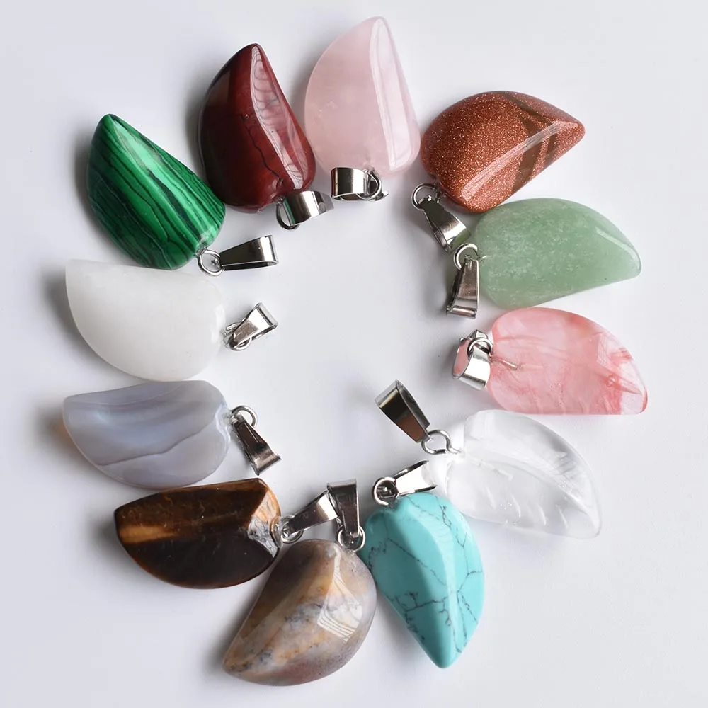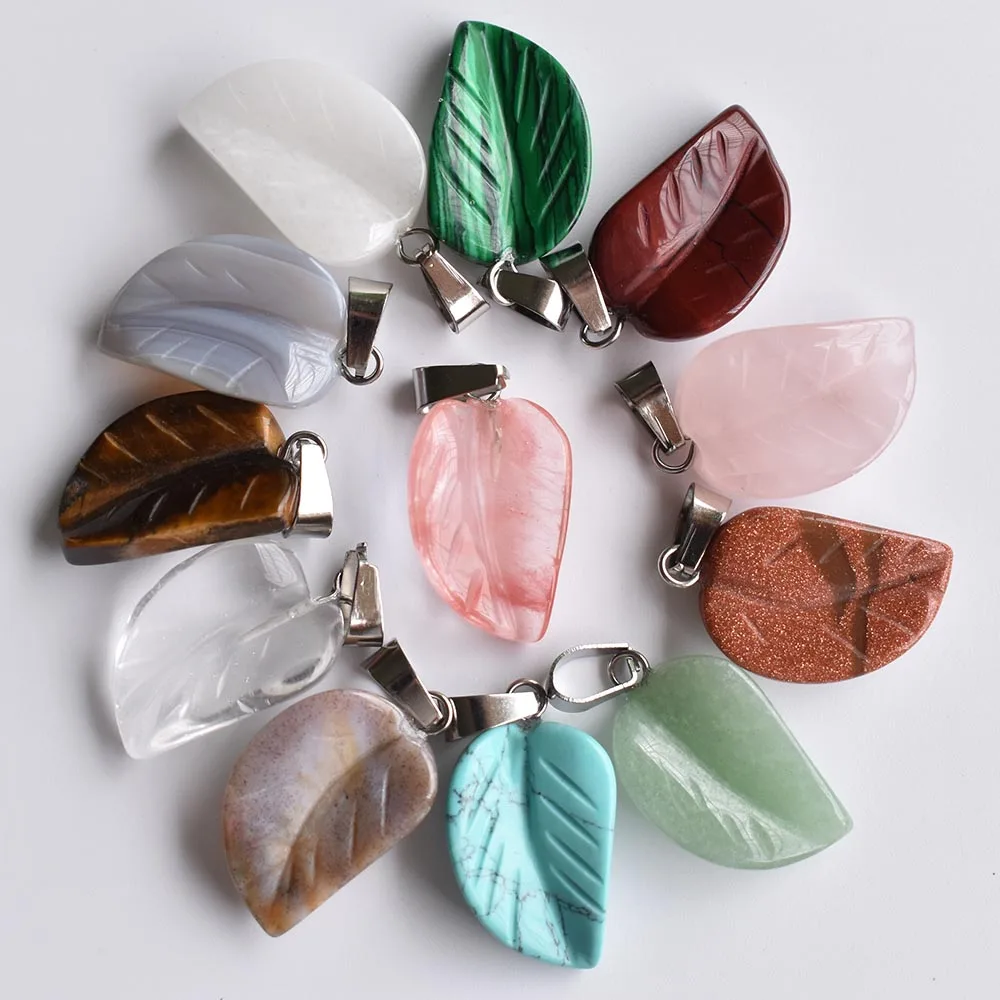 Лидер продаж 2020, модные подвески из натурального камня в ассортименте с смешанными листьями для изготовления ювелирных изделий 12 шт.лот, оптовая продажа, бесплатная доставка