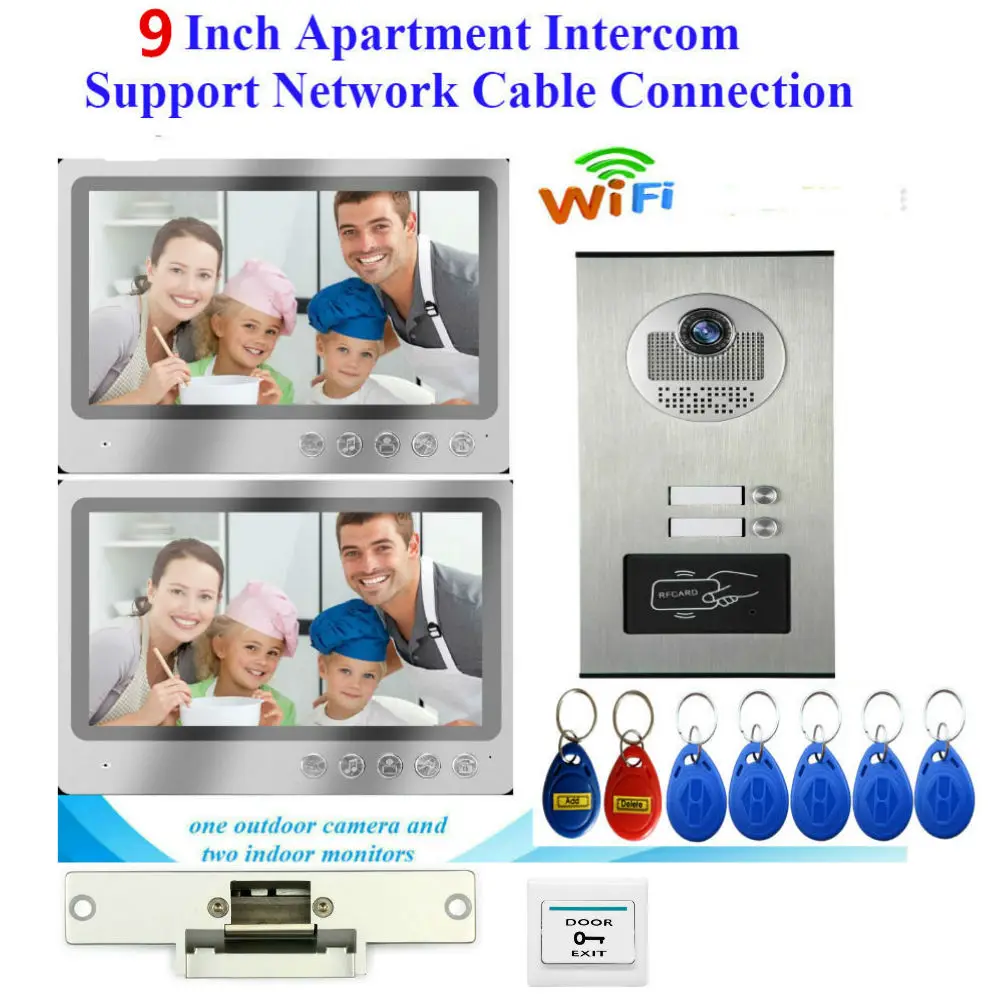 Видеодомофон 9 дюймов, Wi-Fi, беспроводной дверной звонок, система внутренней связи, Android, IOS, приложение для 2 единиц квартиры