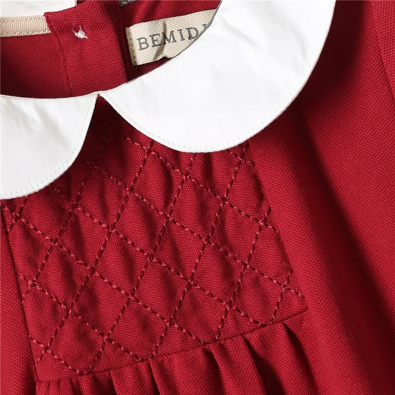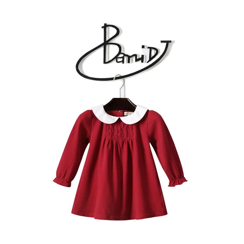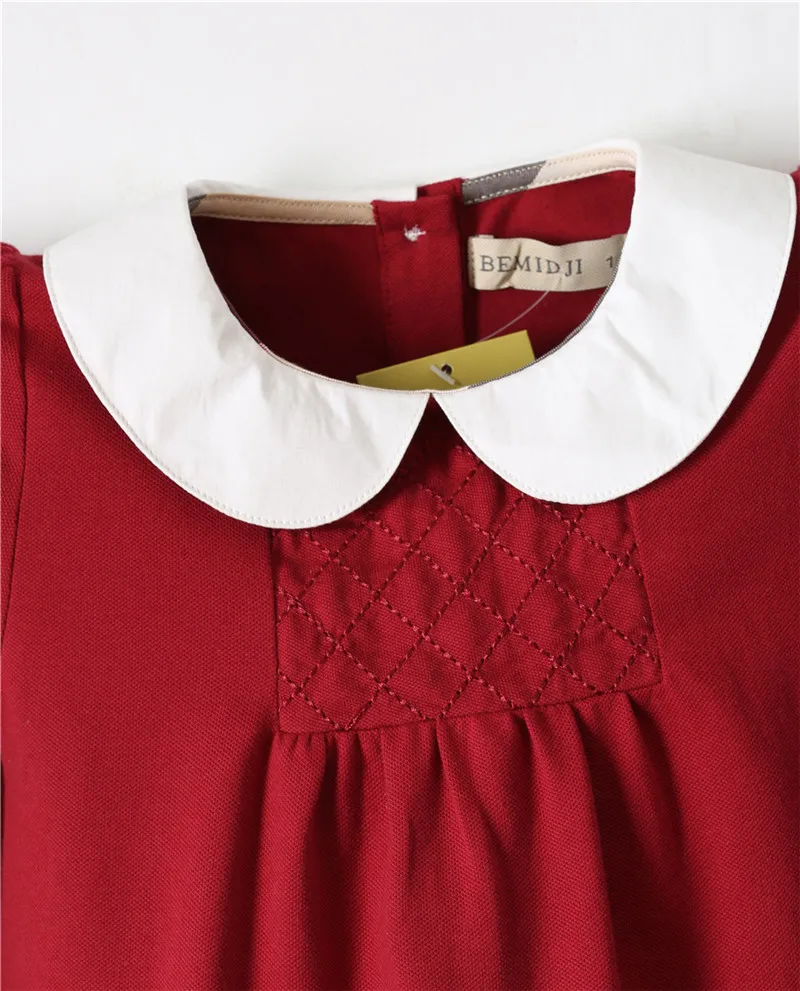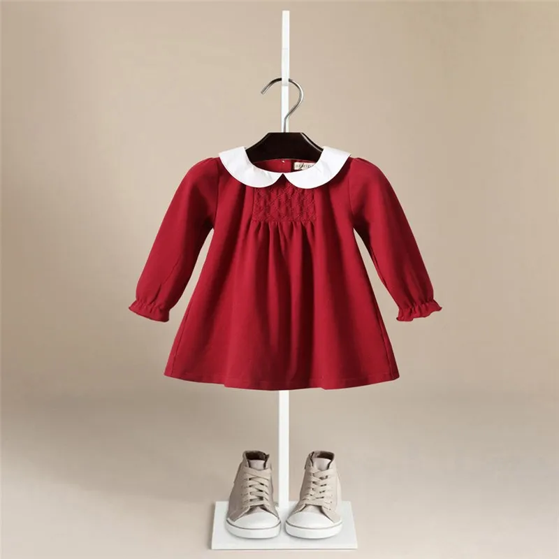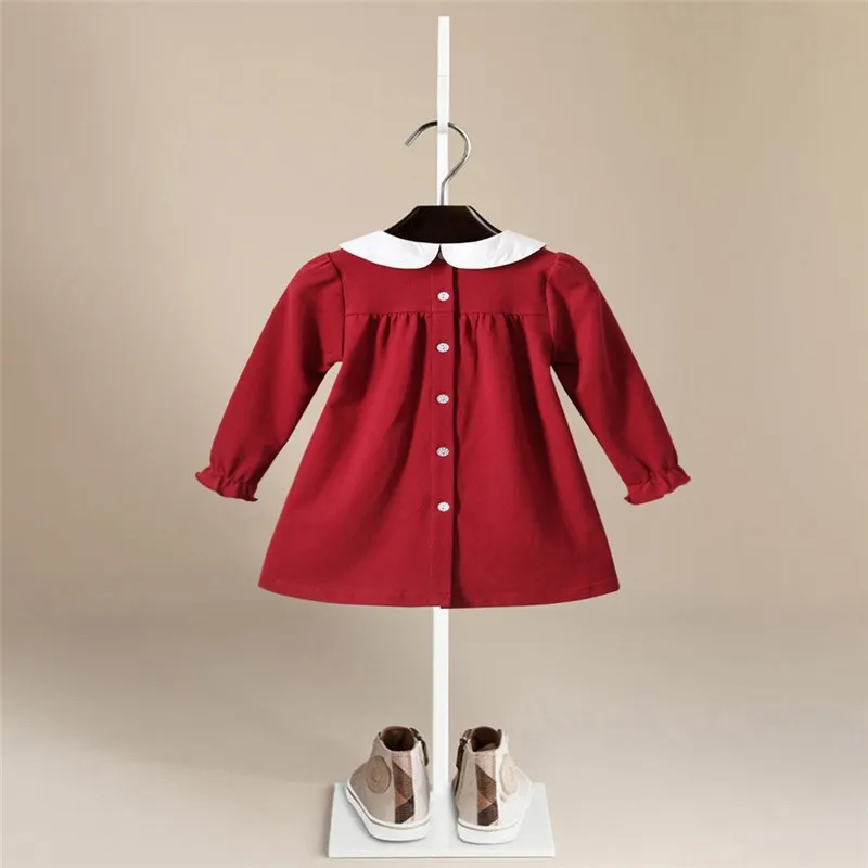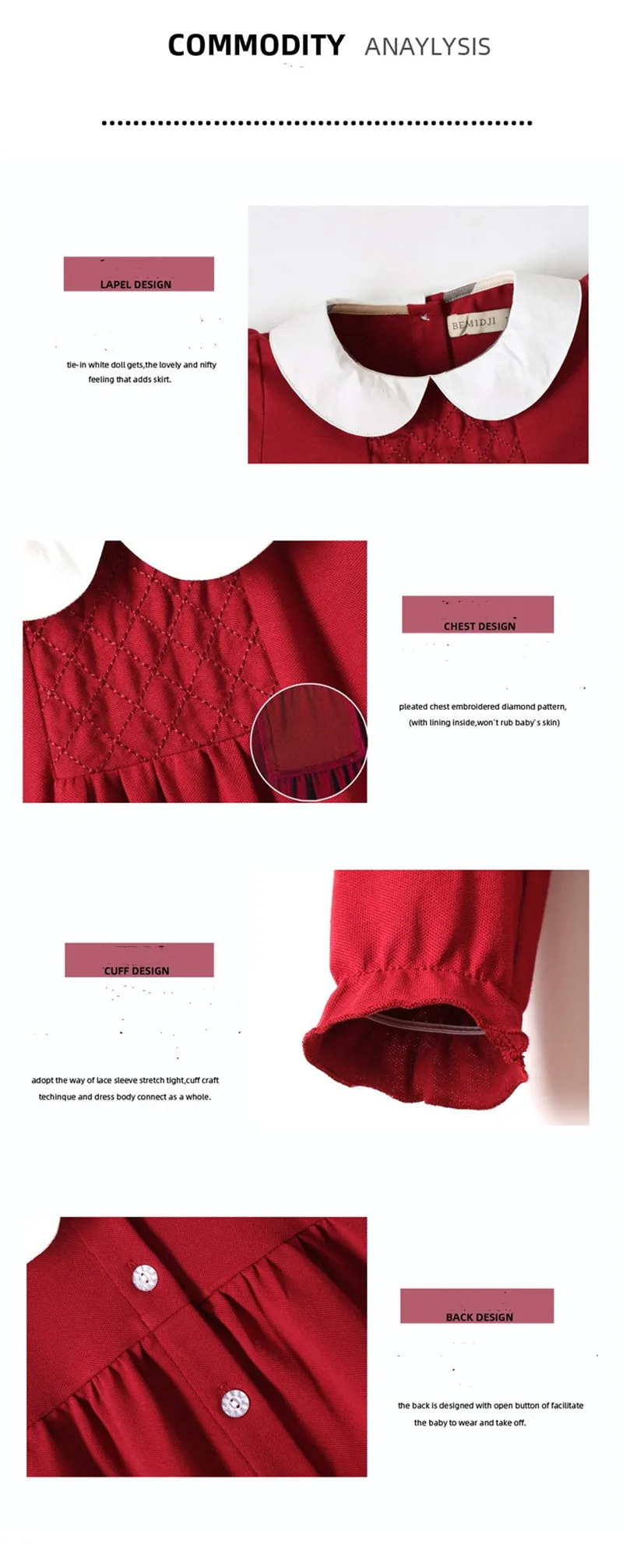 Осеннее милое Красное Бальное Платье с вышивкой, платья для девочек, детское праздничное платье для девочек, платье с длинным рукавом и круглым вырезом, украшенное бусинами