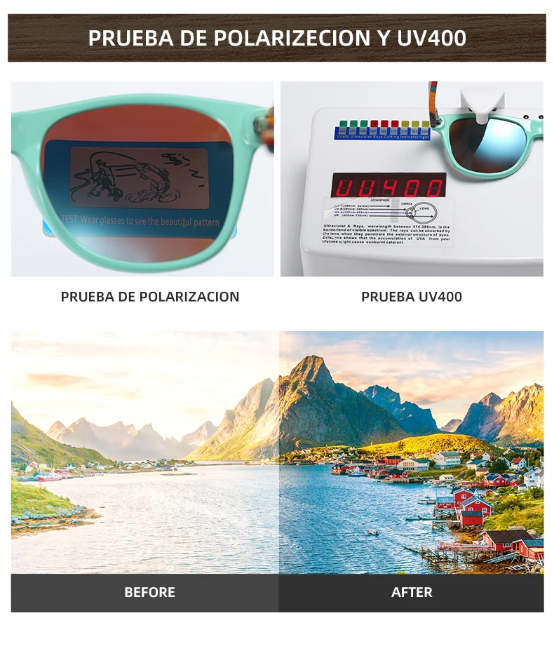 Солнцезащитные очки с бамбуковыми дужками, поляризационные, UV400