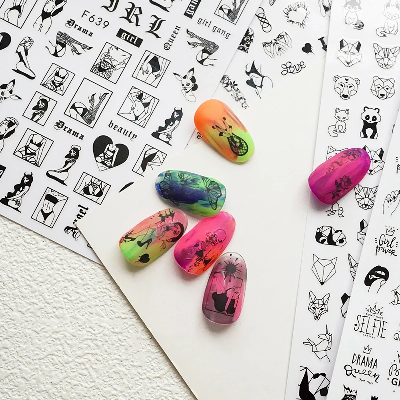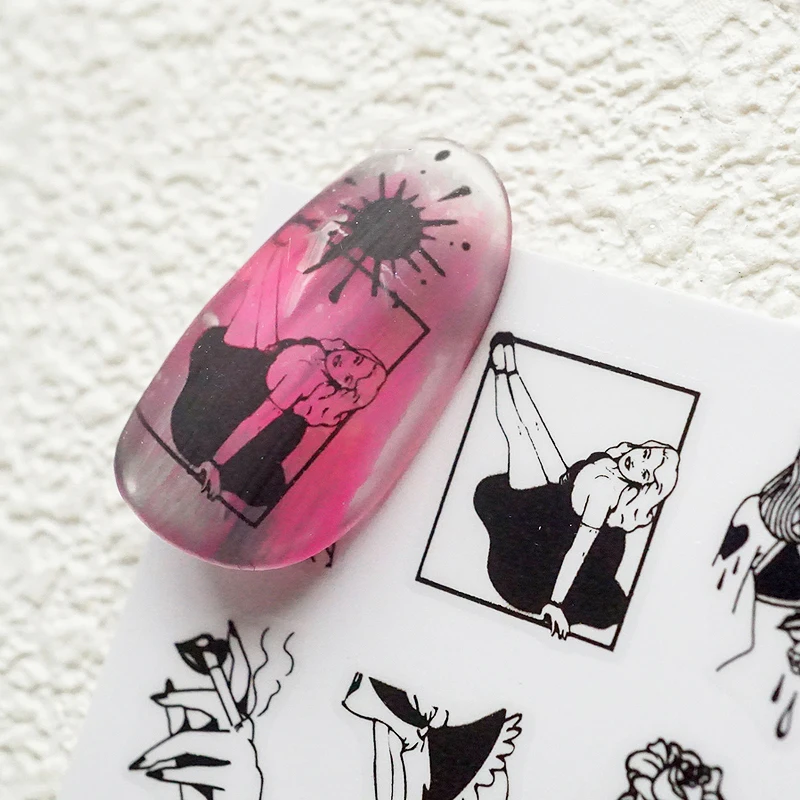 Черные стикеры для дизайна ногтей своими руками 2020, клейкие стикеры, наклейки, инструмент, сексуальное женское изображение, татуировка для дизайна ногтей, украшение Z0331