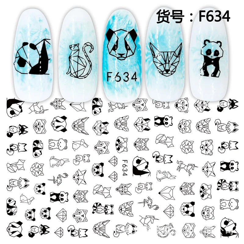 1 лист 3D наклейки для ногтей черные линии Цветы животные Листья Се...