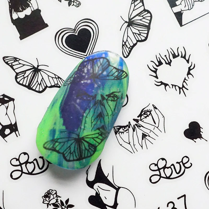 Новинка 2020, 1 шт., черно-белые 3D наклейки для ногтей, сексуальны...
