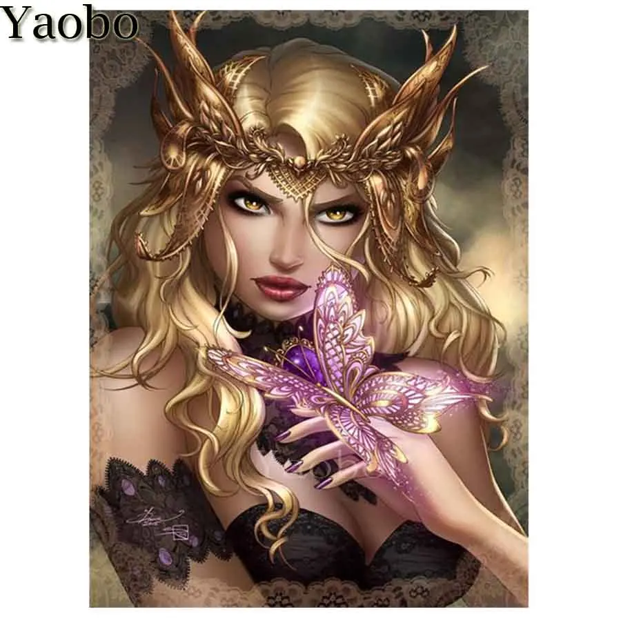 5D DIY алмазная живопись бабочка девушка вышивка Стразы Вышивка крестом полный квадрат круговая живопись Алмазная мозаика Искусство Новое
